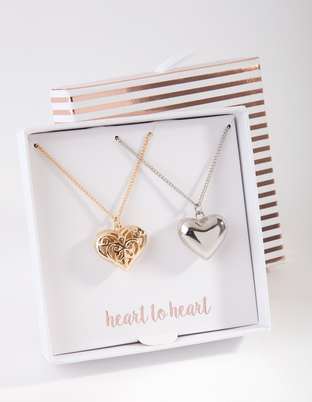 This set comprises of two necklaces with heart pendants and are perfect for gifting.