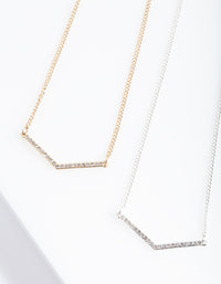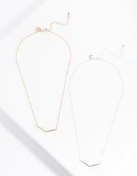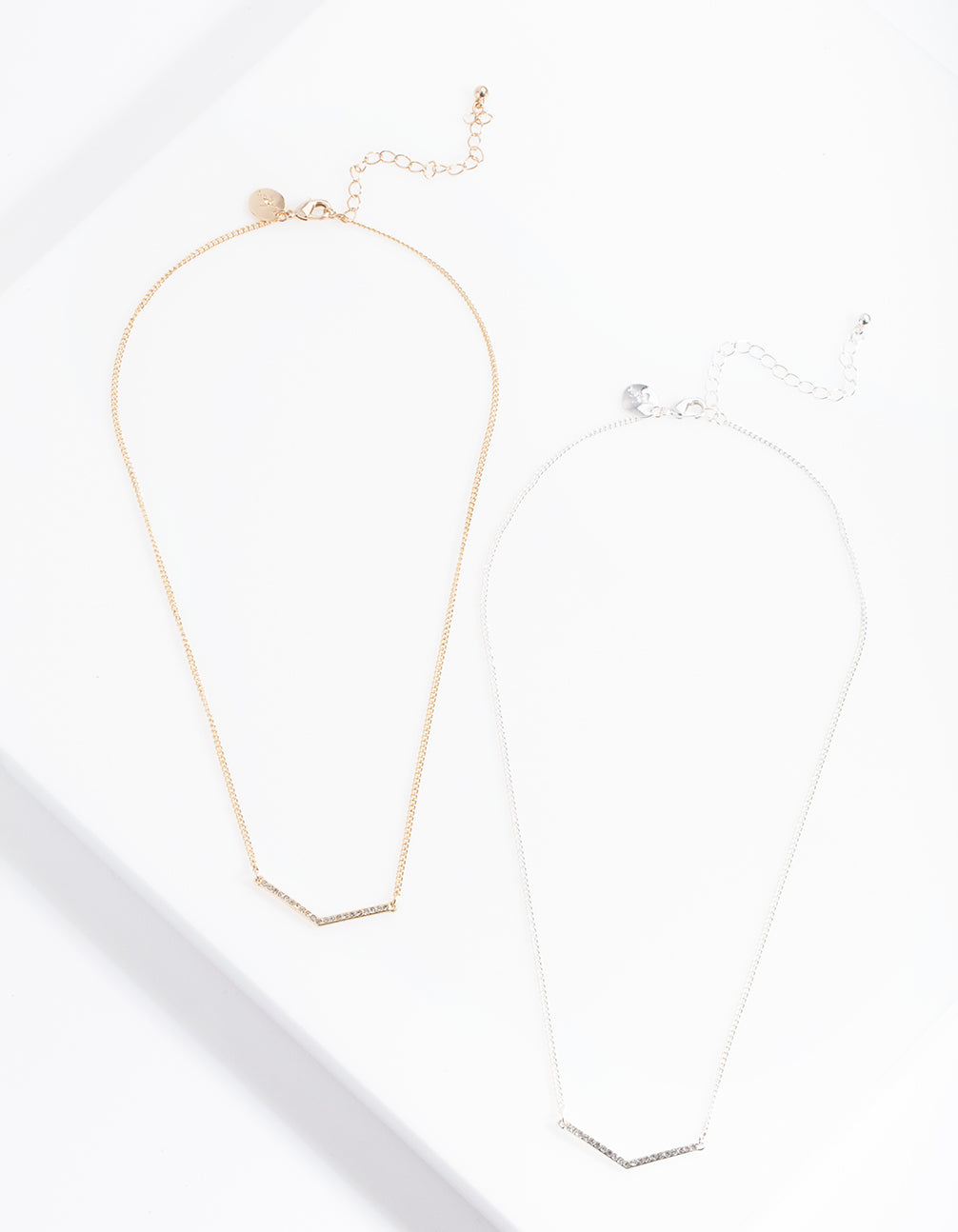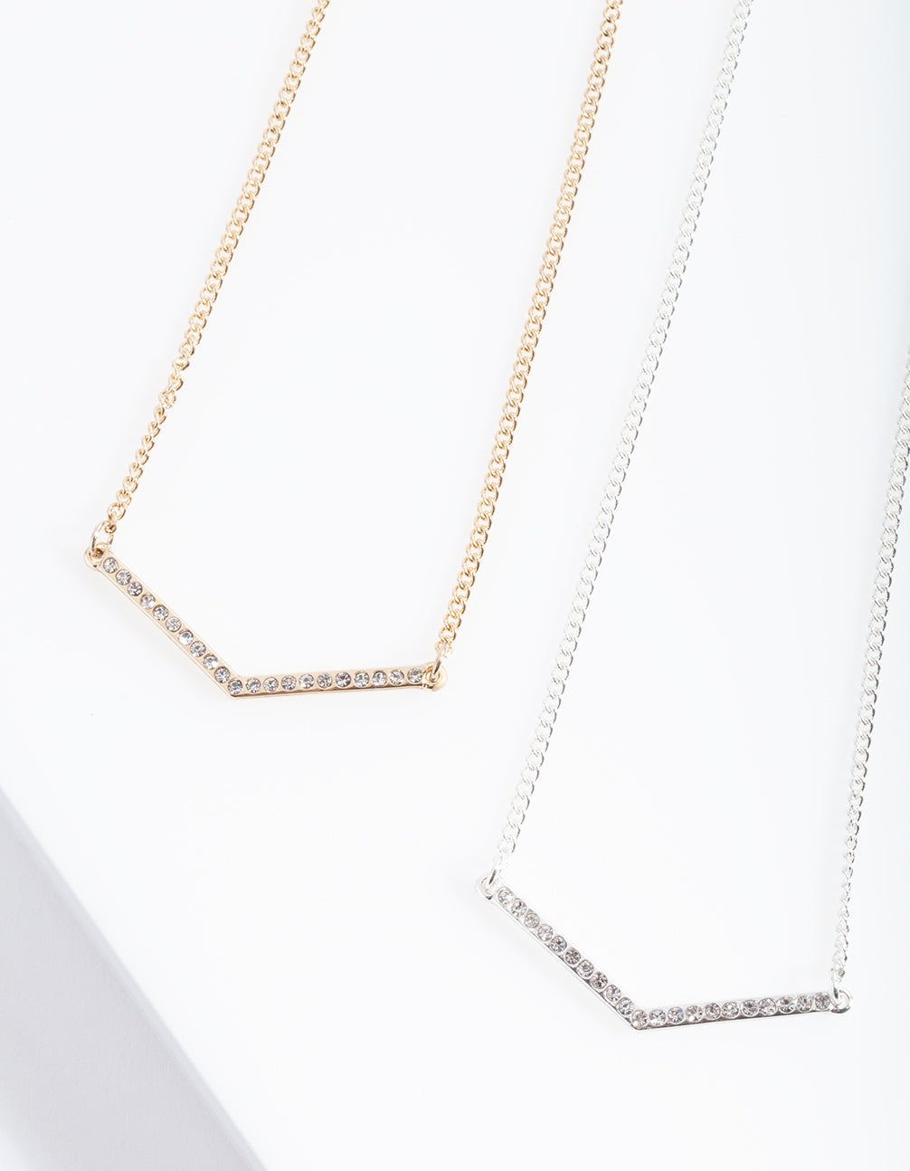 This pack comes with a duo of mixed metal designs with diamante bar pendants.