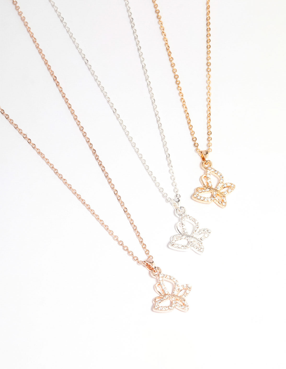 Mixed Metal Diamante Butterfly Necklace 3-Pack