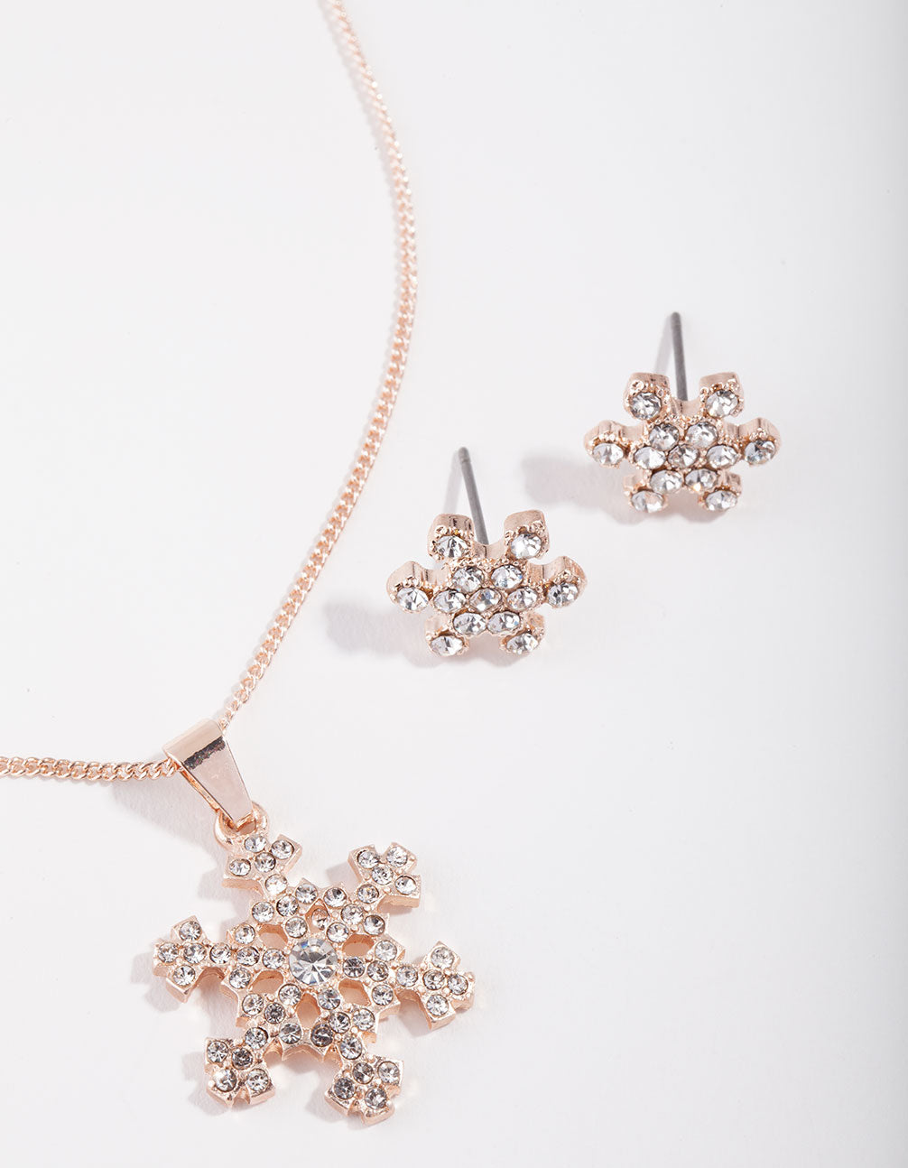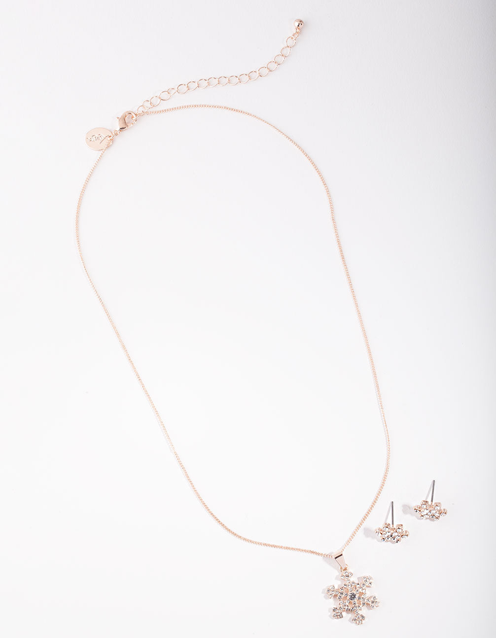 Rose Gold Diamante Snowflake Necklace & Earrings
