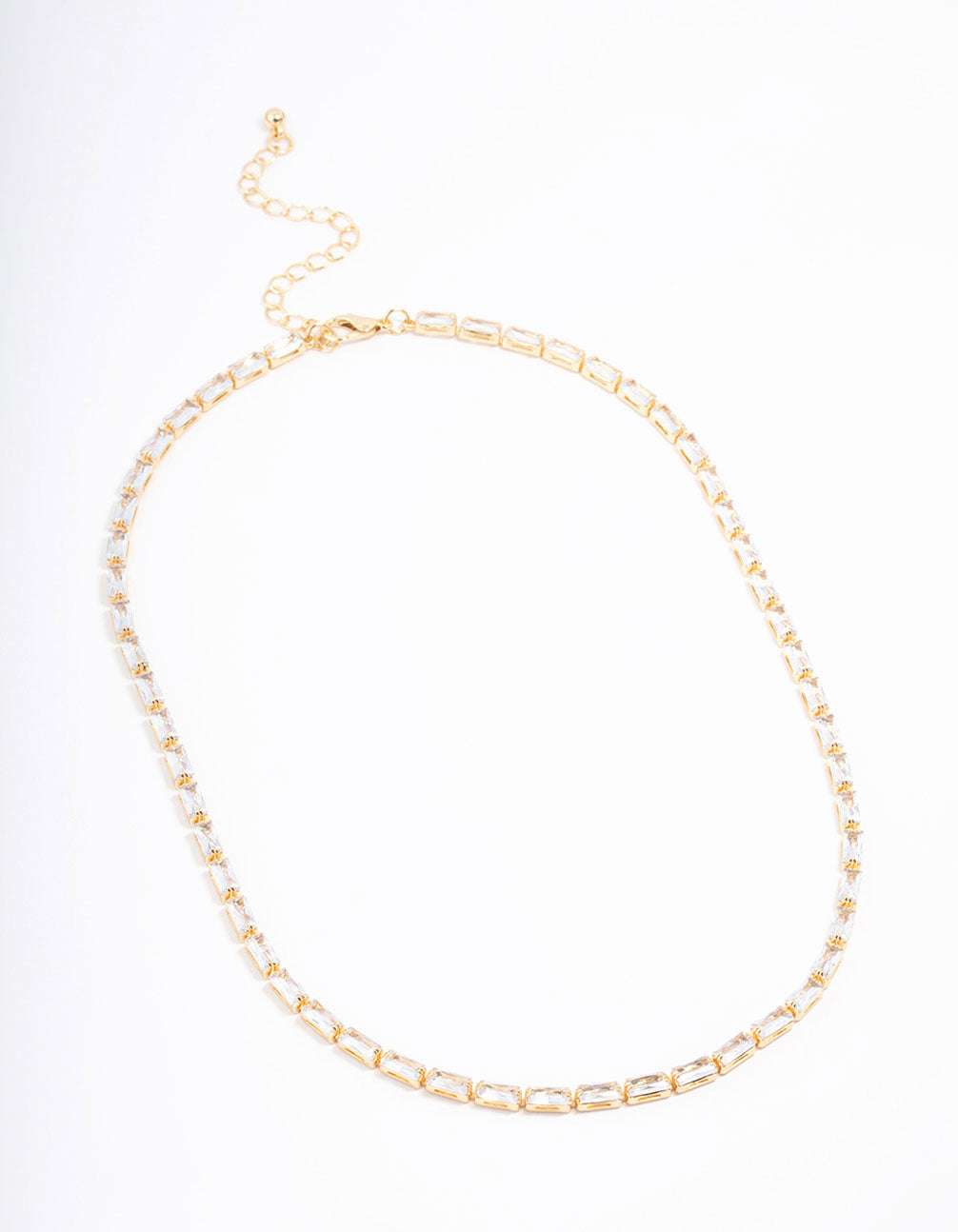 - This gift box contains a long, gold plated chain encrusted with baguette cut crystals for a hint of glamour.