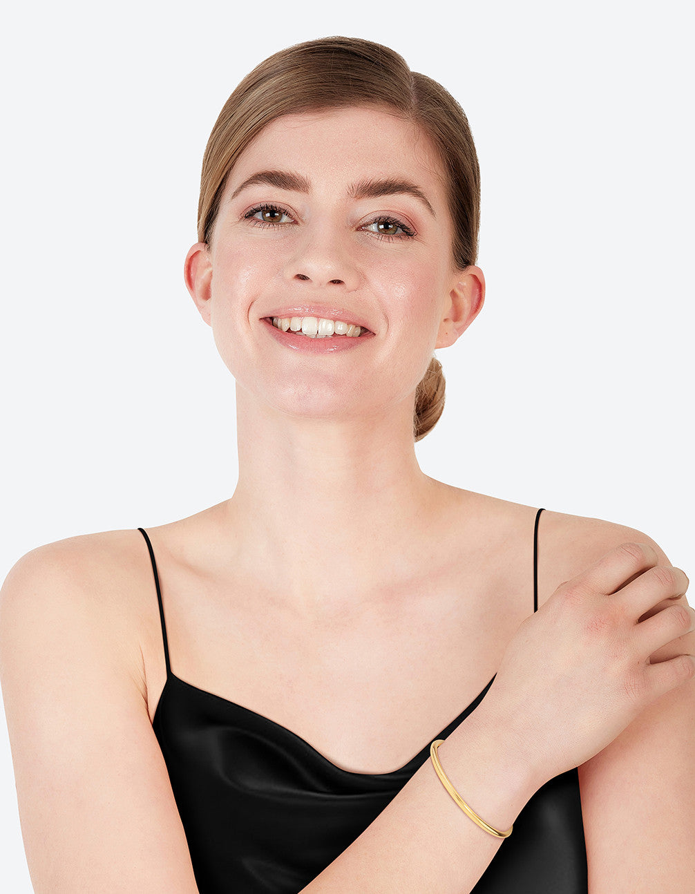 - This gift box contains a simple gold plated molten bangle, perfect for everyday wear.