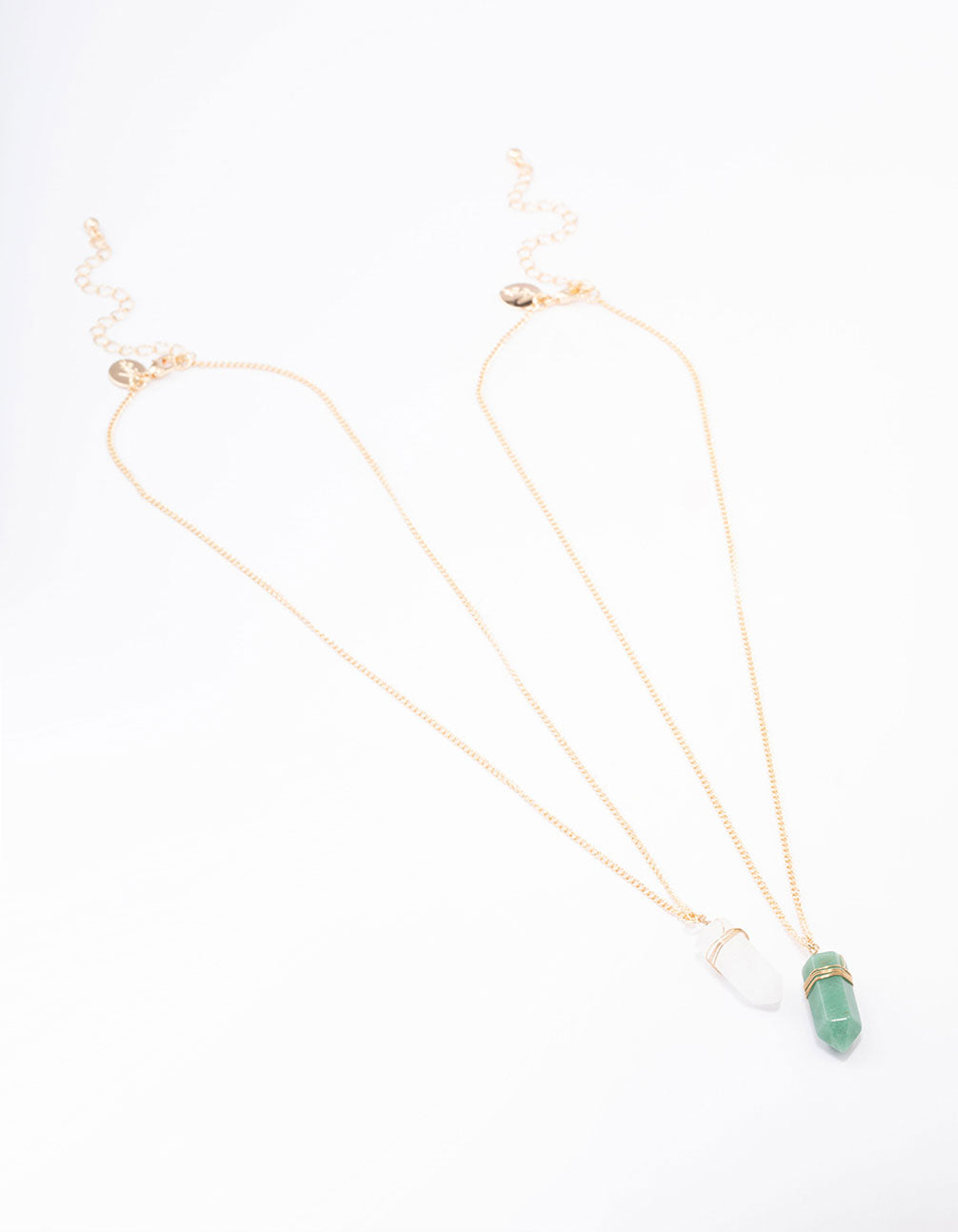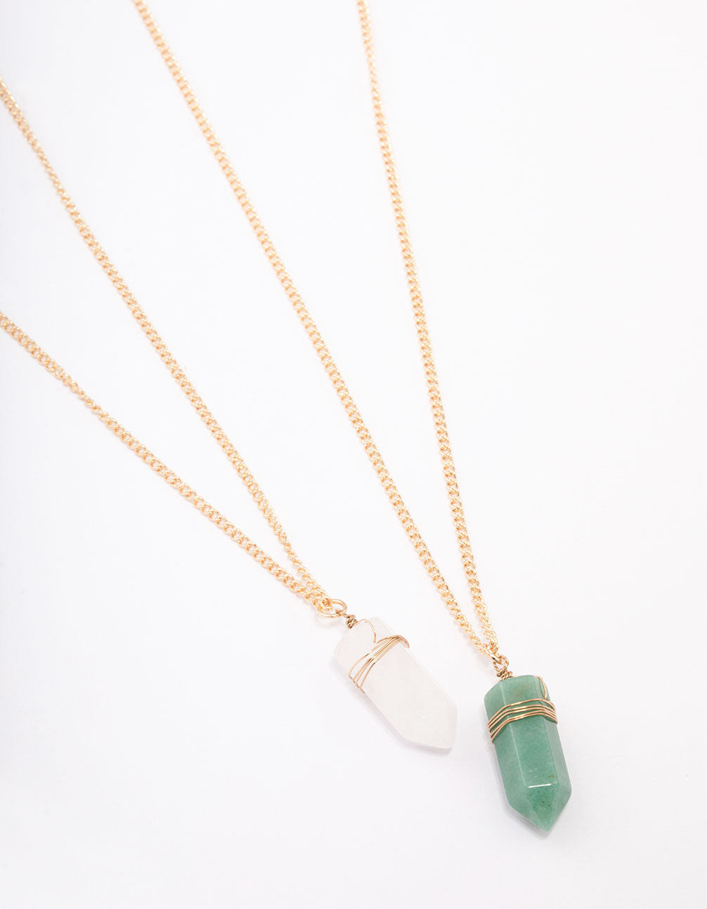 Gold Mixed Semi-Precious Wrapped Pendant Necklace Pack
