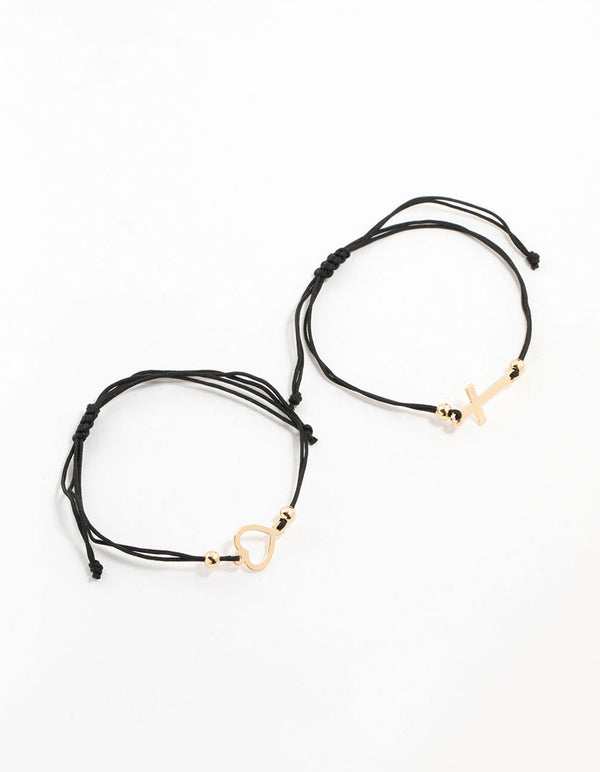Heart & Cross Fabric Rope Bracelets 2-Pack
