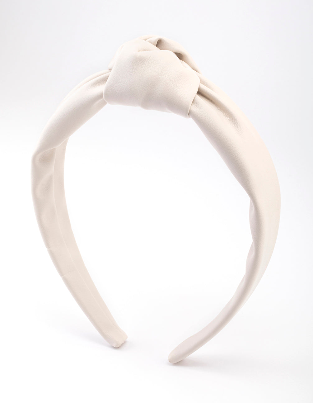 Switch up your look with our collection of versatile hair essentials! Bid your bad hair day goodbye with this cream, faux leather knotted headband.