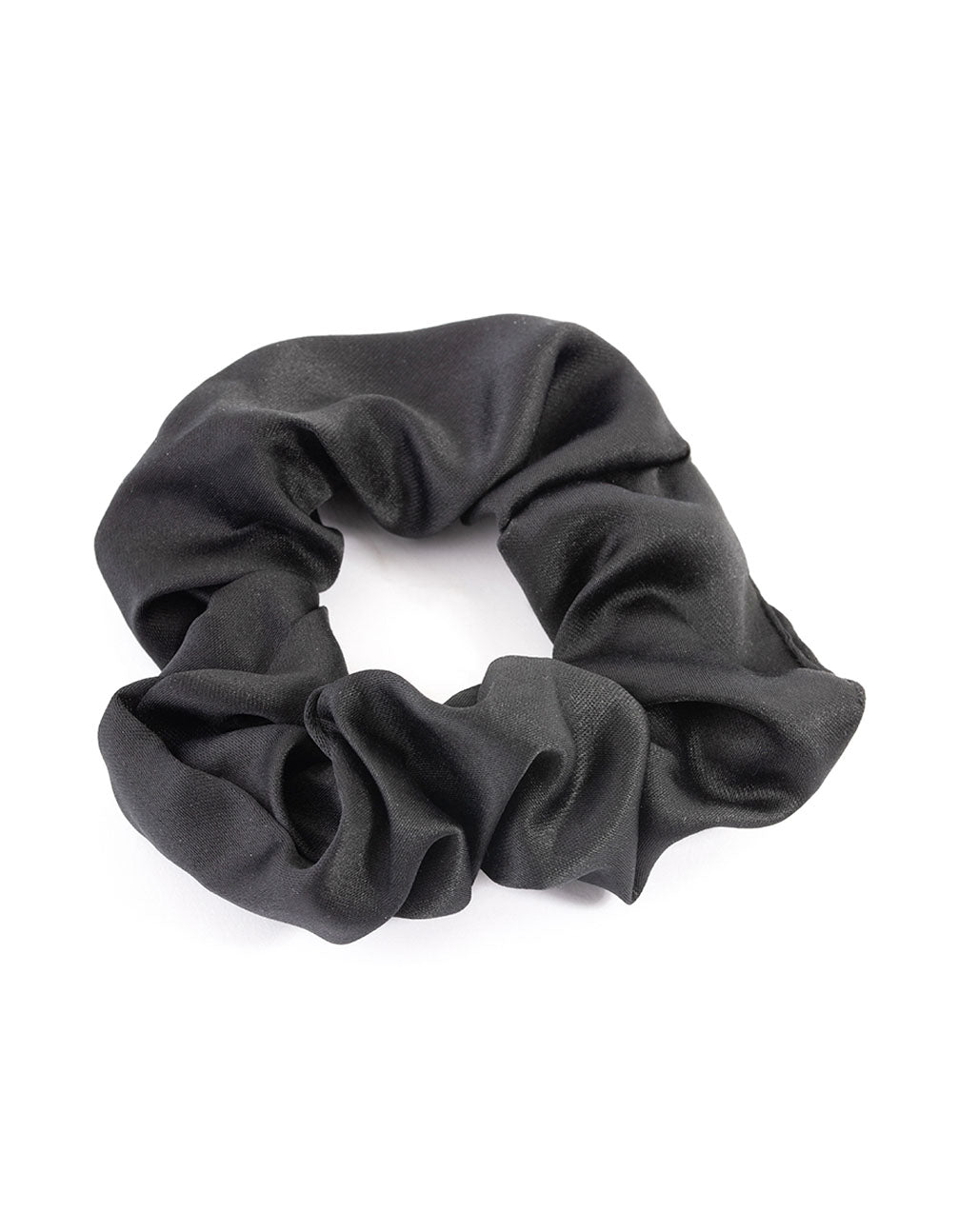 - Our black-coloured fabric srcunchie is designed for a silky smooth feel in the hair to minimise frizz.