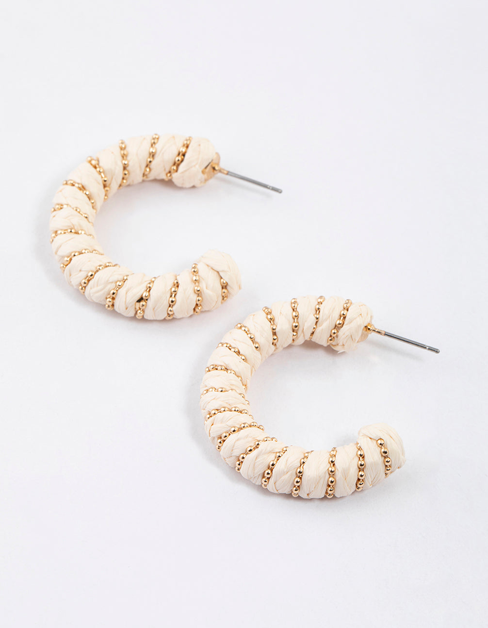 - Style these Gold Raffia Chain Beaded Earrings with a curated pack of gold studs for a curated, modern look.