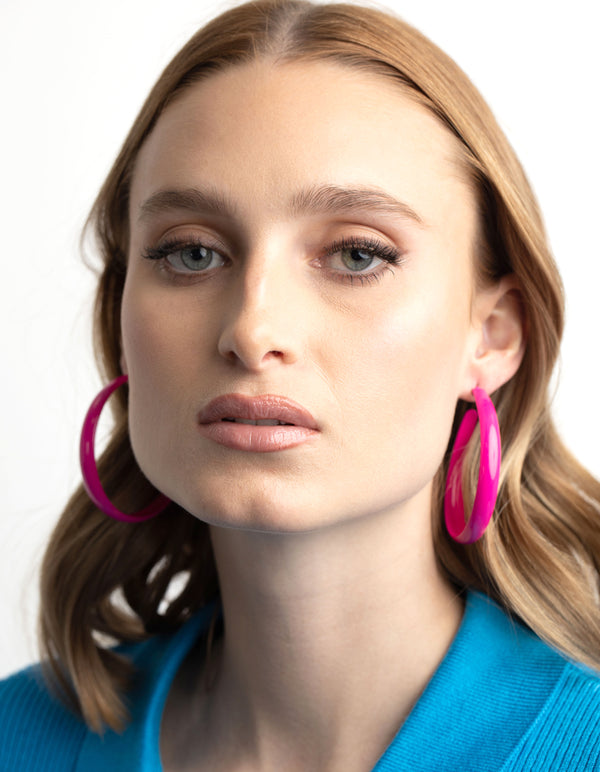 Glossy Pink 60mm Hoop Earrings