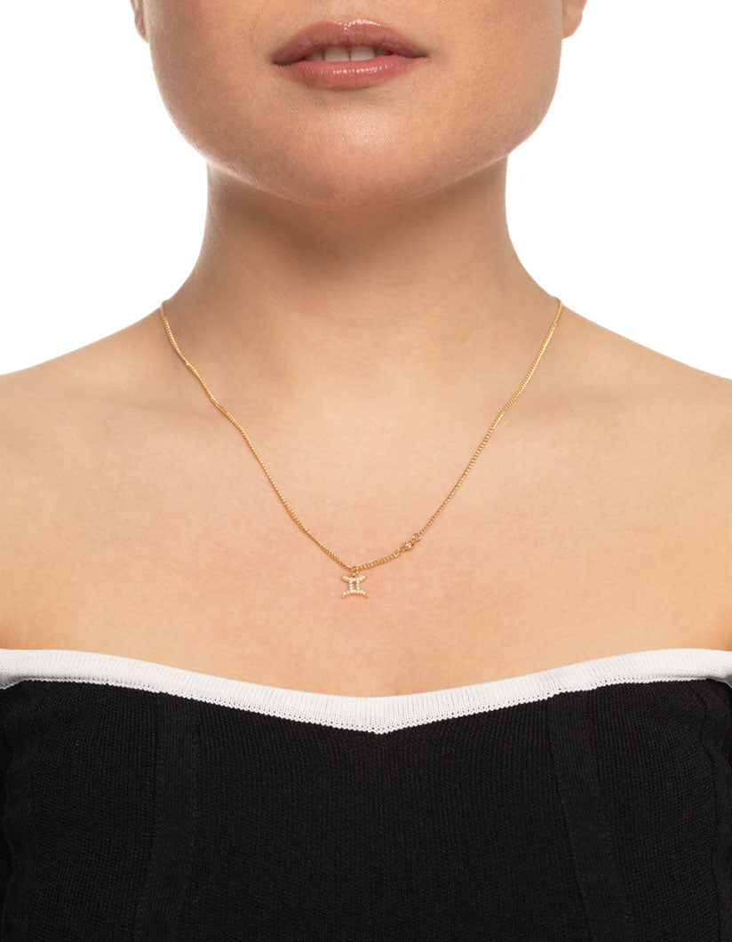 Our Gemini chain necklace is crafted from genuine gold plating and encrusted with cubic zirconia crystals, a practical everyday piece perfect for our fellow air sign.