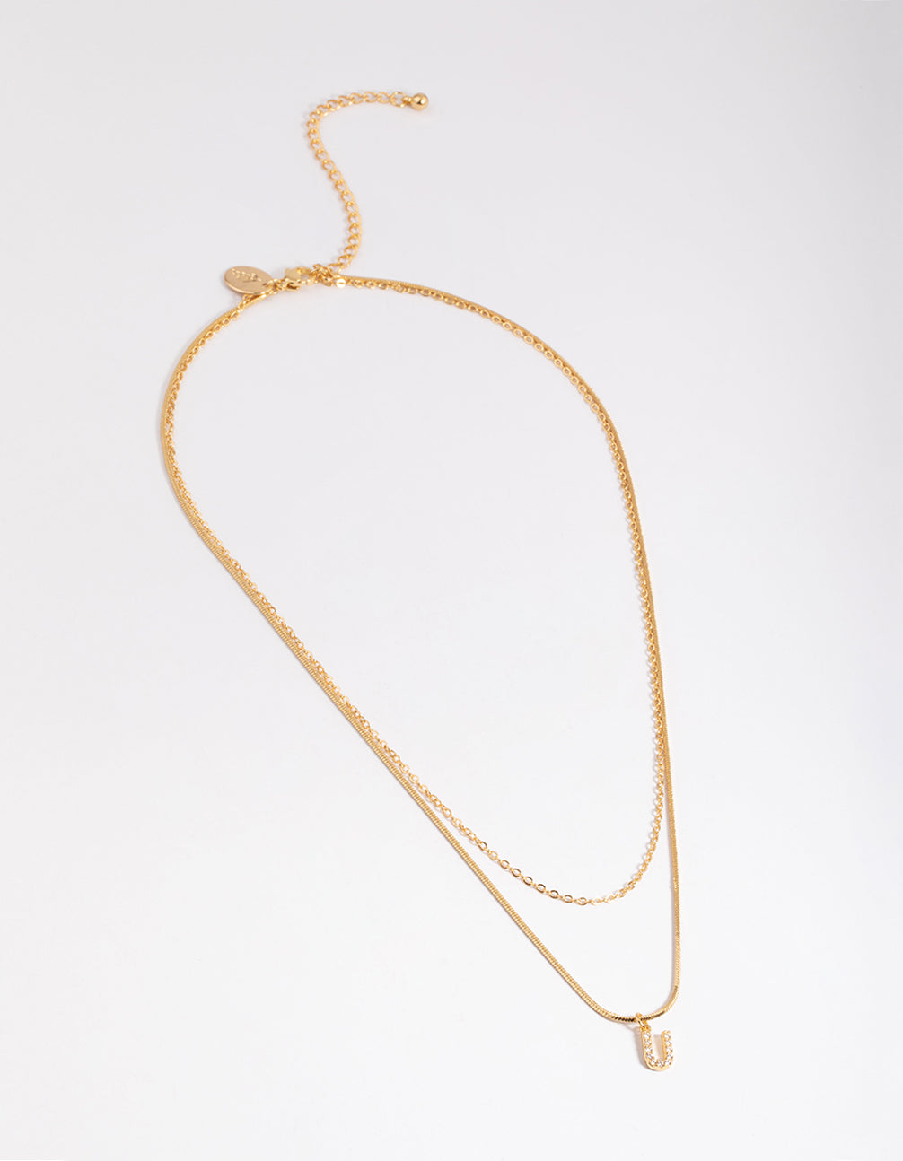 Gold Plated Diamante Letter U Layered Necklace