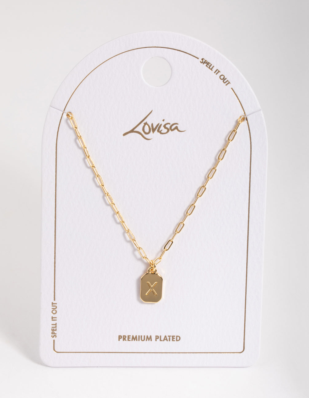 This Gold Plated Letter X Rectangle Pendant Necklace is the perfect 'treat yourself' piece or personalised gift idea.Chain pendants from our Initals Collection are timeless and signature jewellery pieces, personal to you. Accessorise by wearing your own initial, or layer your letters for a unique look.