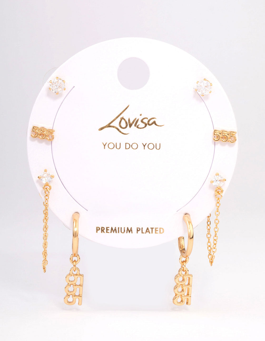 Gold Plated 555 Angel Number Earring Pack