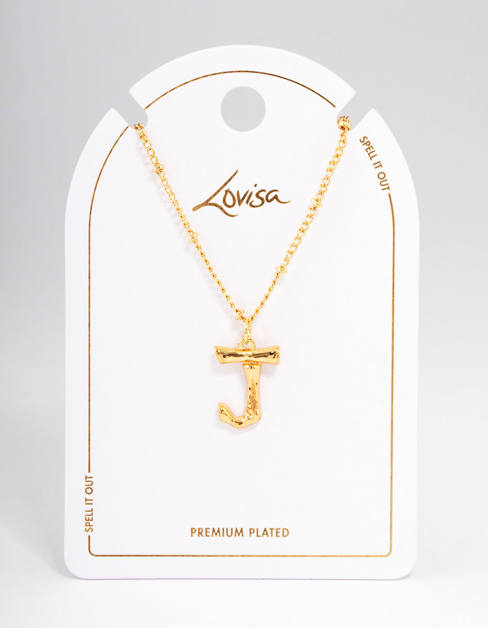 Gold Plated Letter J Bamboo  Necklace Gold Plated Letter J Bamboo  Necklace Gold Plated Letter J Bamboo  Necklace