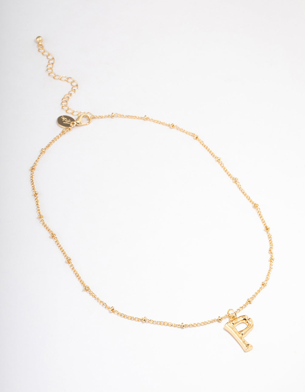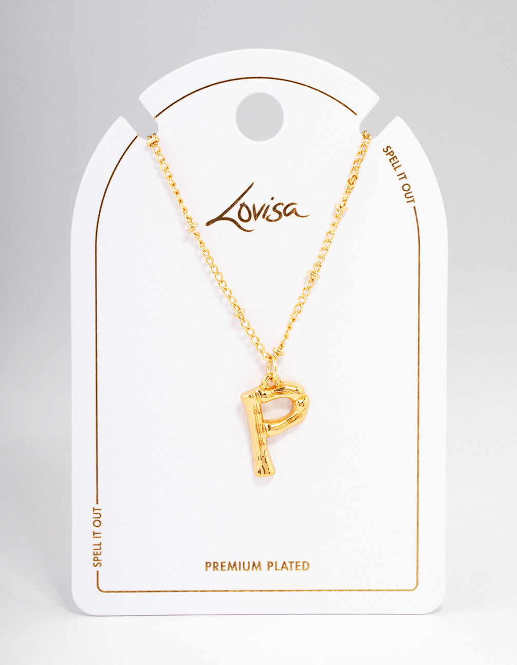 - This letter 'P' initial necklace is made with real gold plating and features an intricate, bamboo-inspired texture for a unique finish. Style this necklace with a zodiac ear stacker for a curated finish.
