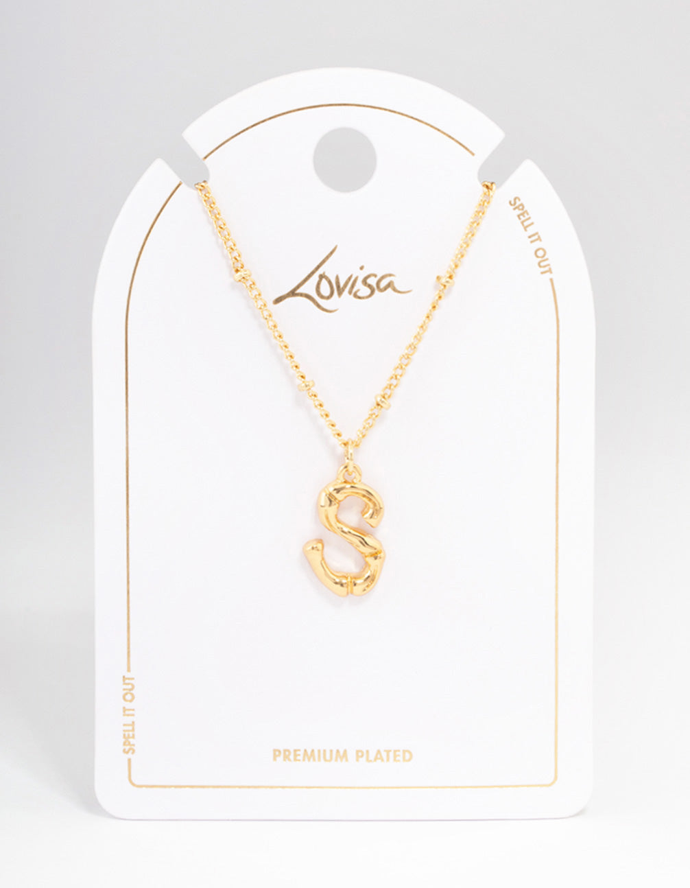 Gold Plated Letter S Bamboo  Necklace Gold Plated Letter S Bamboo  Necklace Gold Plated Letter S Bamboo  Necklace