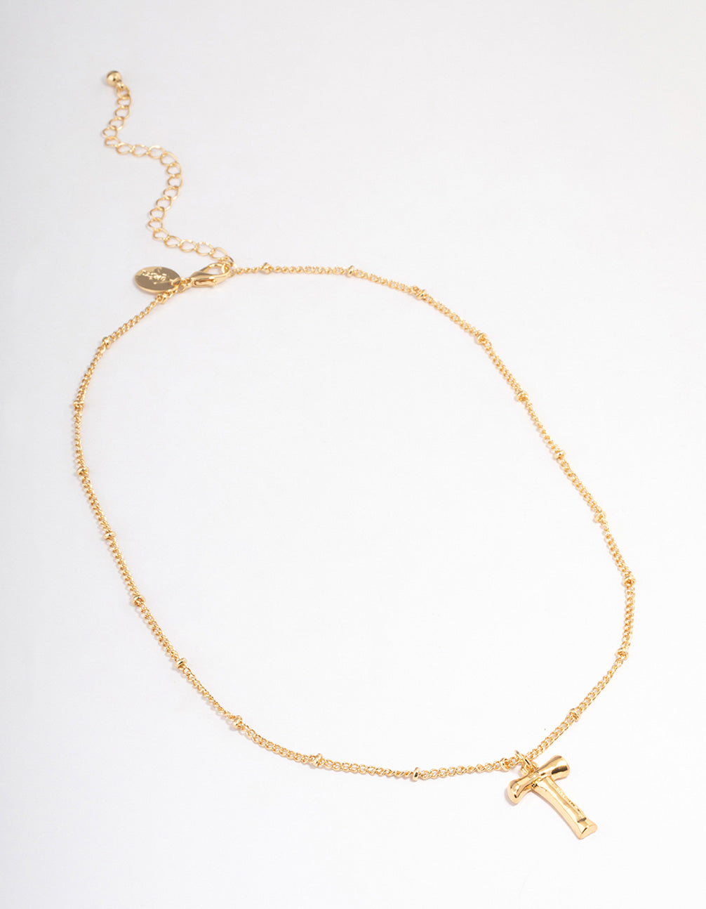 Gold Plated Letter T Bamboo Necklace