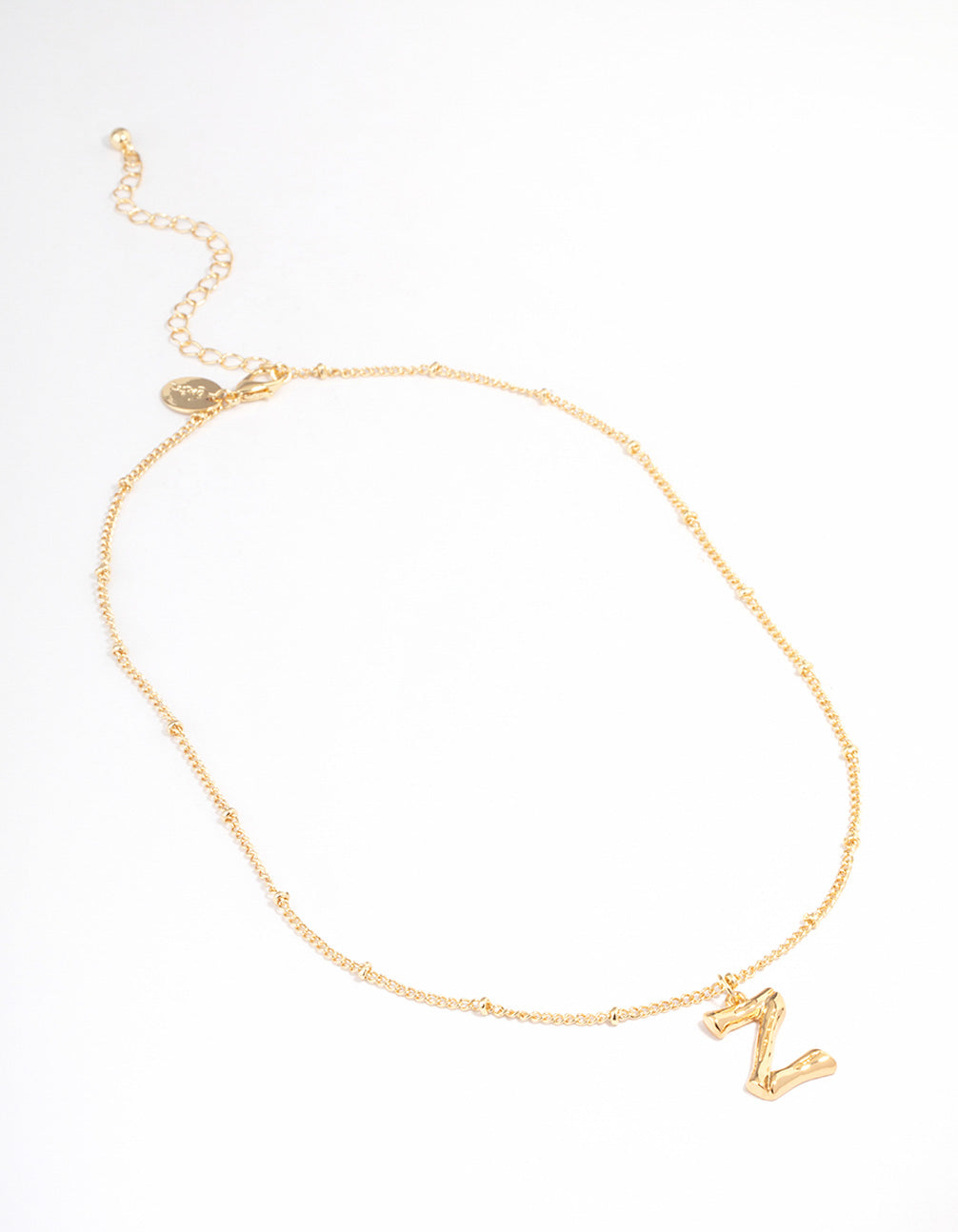- This letter 'Z' initial necklace is made with real gold plating and features an intricate, bamboo-inspired texture for a unique finish. Style this necklace with a zodiac ear stacker for a curated finish.