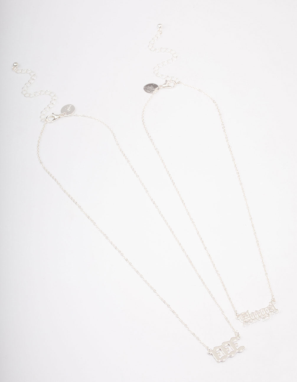 - This silver plated necklace pack features a '333' and 'angel' script pendant. Repetitions of 3 are a symbol of support! Wear these necklaces each and every day to channel good energy and support into your life.
