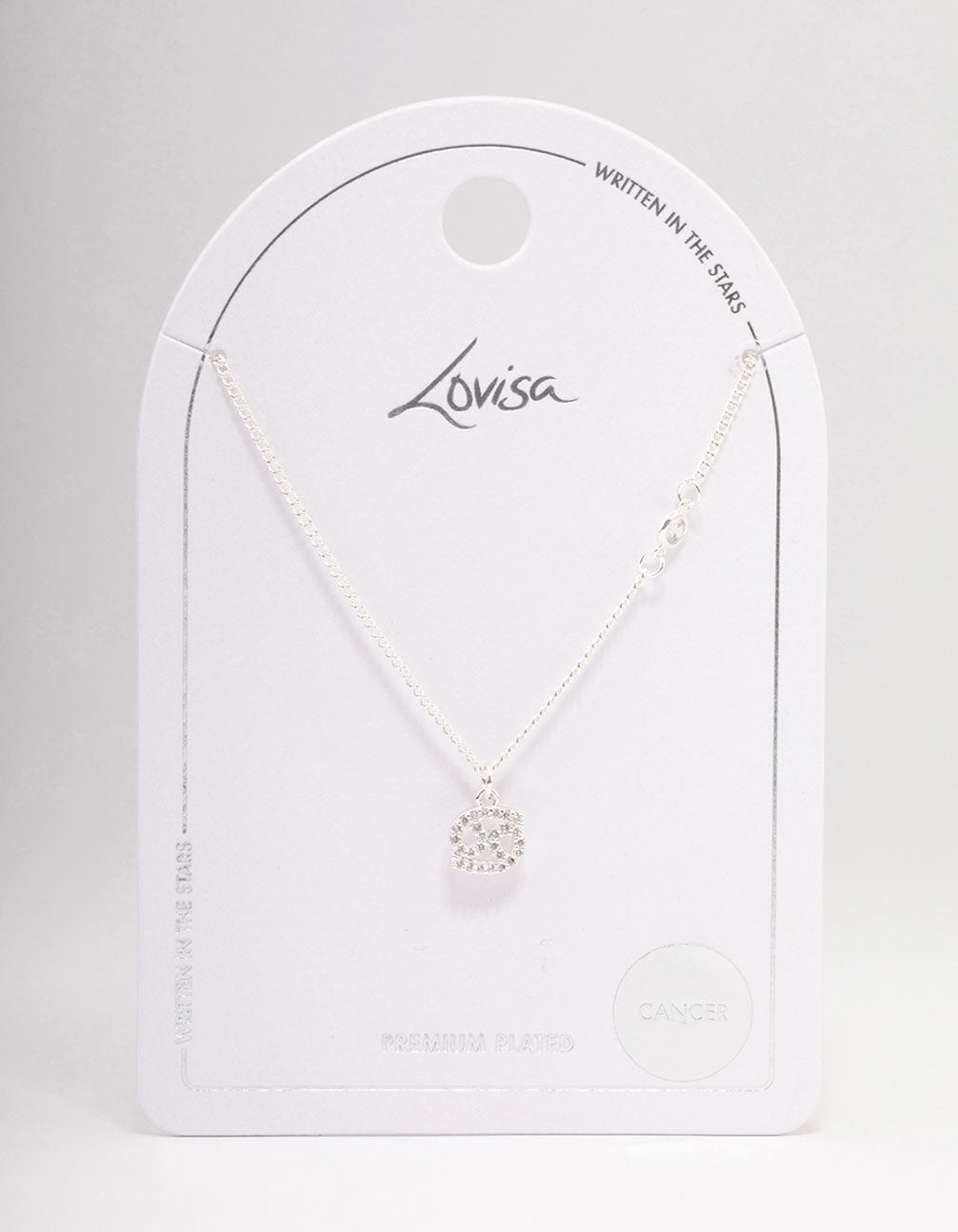 - This Cancer pendant necklace features a dainty, cubic zirconia-encrusted pendant – perfect for adding a personalised touch to your stack.
