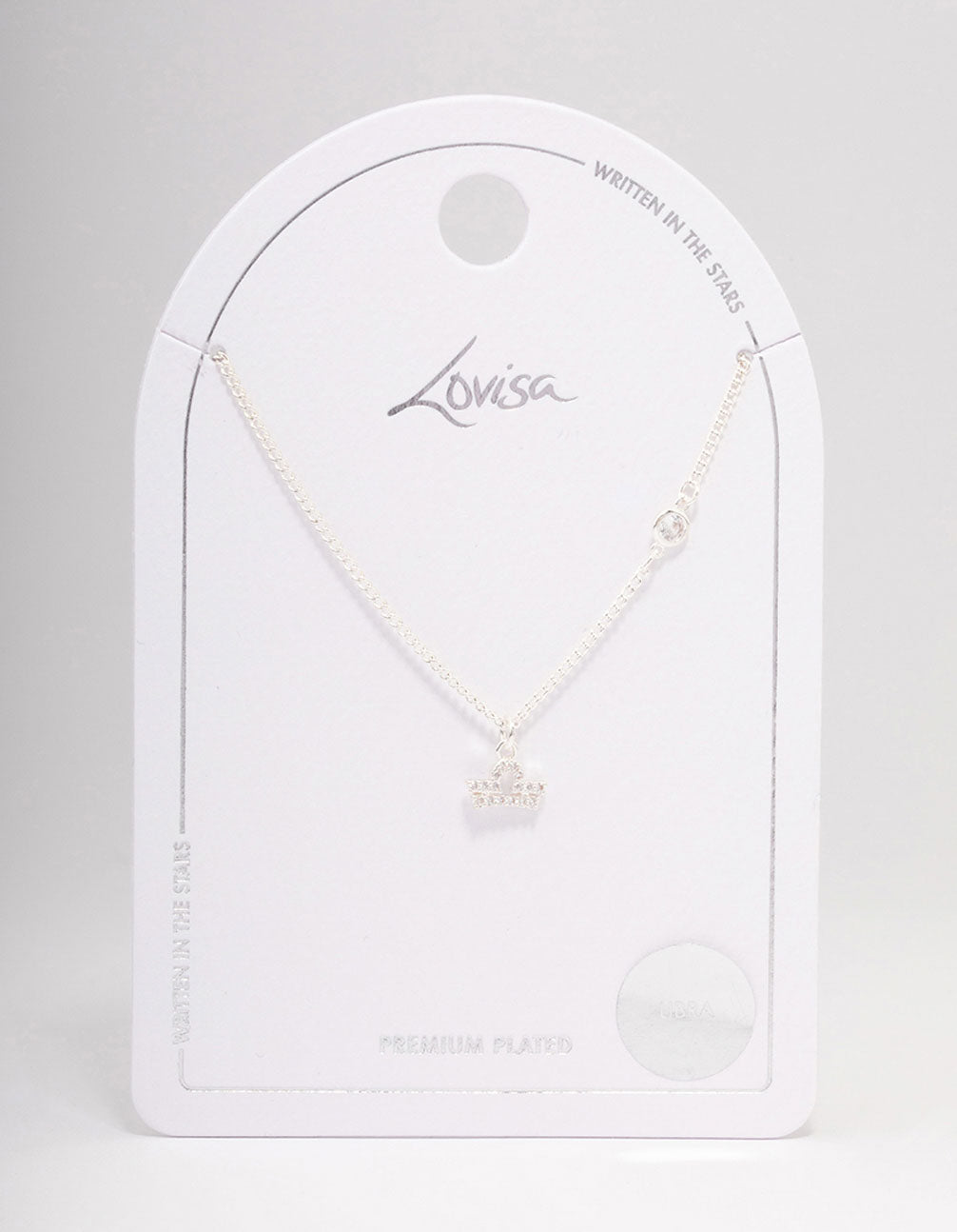 Silver Plated Libra Necklace With Cubic Zirconia Pendant