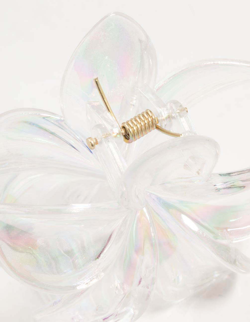 Transform your hair game with this playful claw clip, featuring a dazzling iridescent frangipani flower. Perfect for a touch of tropical garden magic!