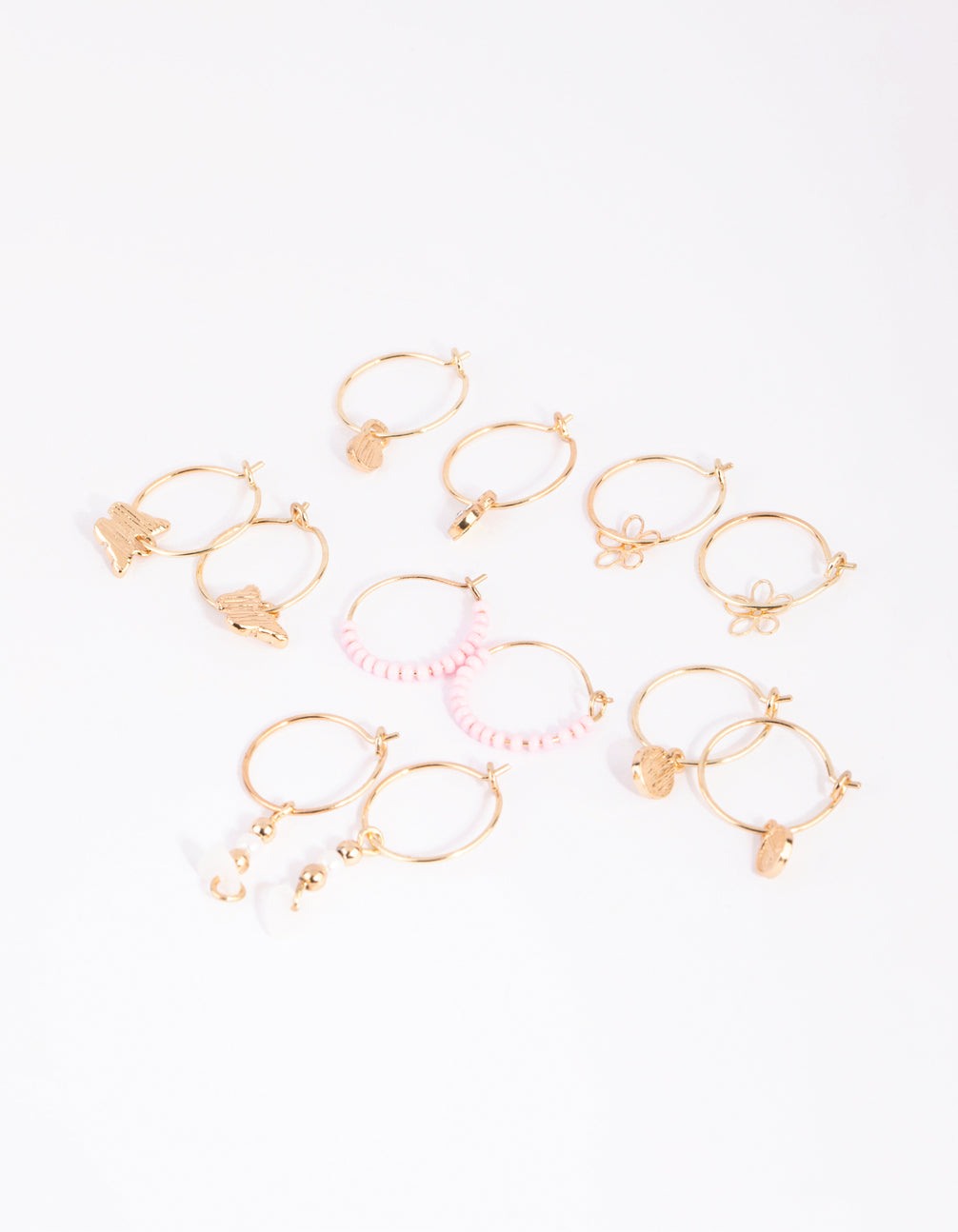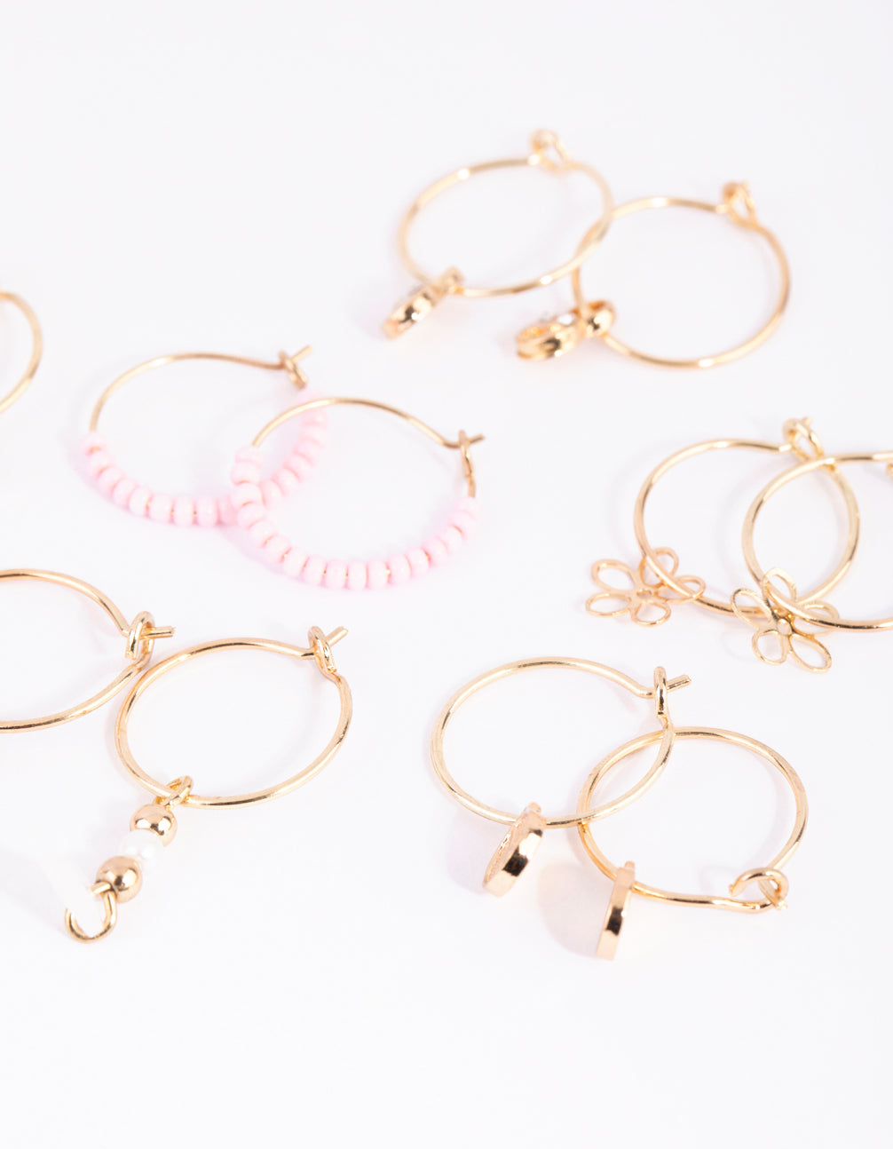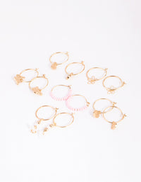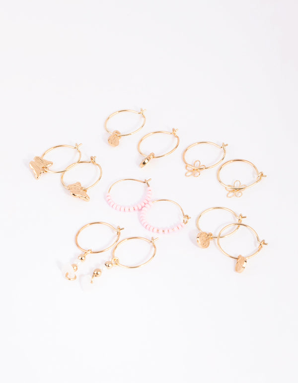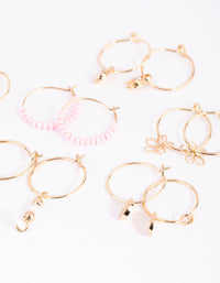 Gold Flower Bead Hoop Earring 6-Pack