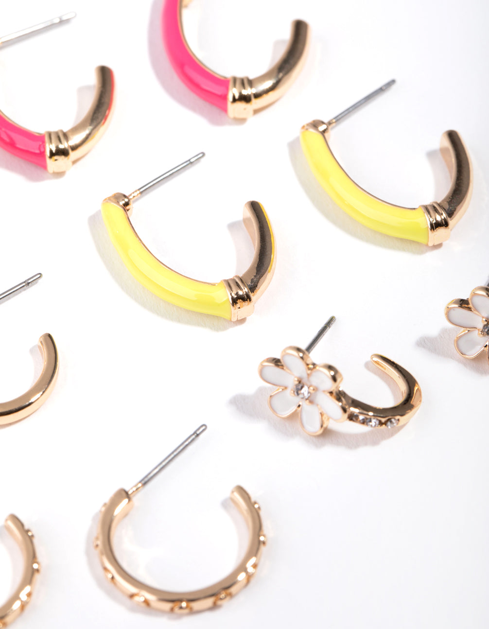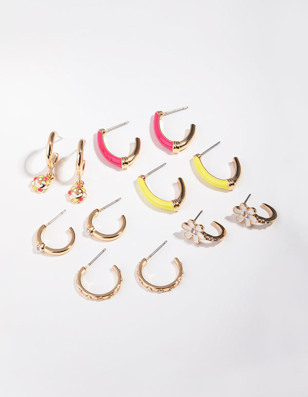 Go for gold with this sunny earring pack! This pack features six gold-toned hoops with playful motifs and adornments in golden bronze shades. Mix and match for endless fun looks!
