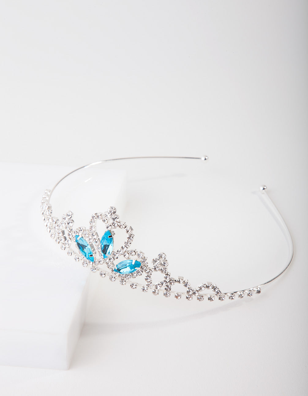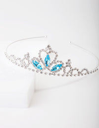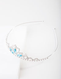 Kids Silver Aqua Stone Diamante Tiara Headband