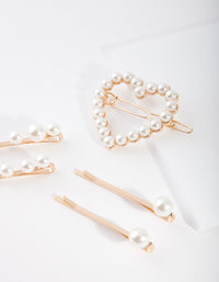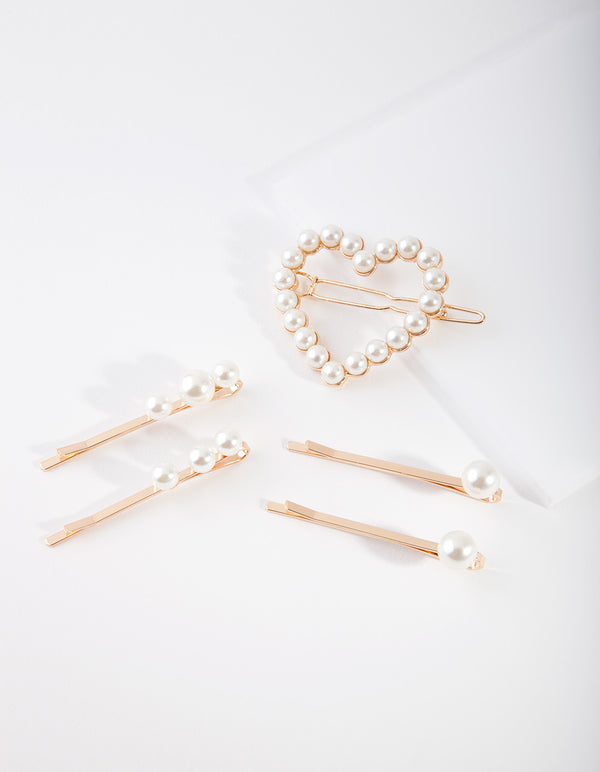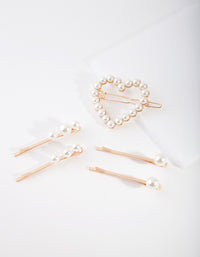 Kids Gold Heart Pearl Mix Hair Clip Pack