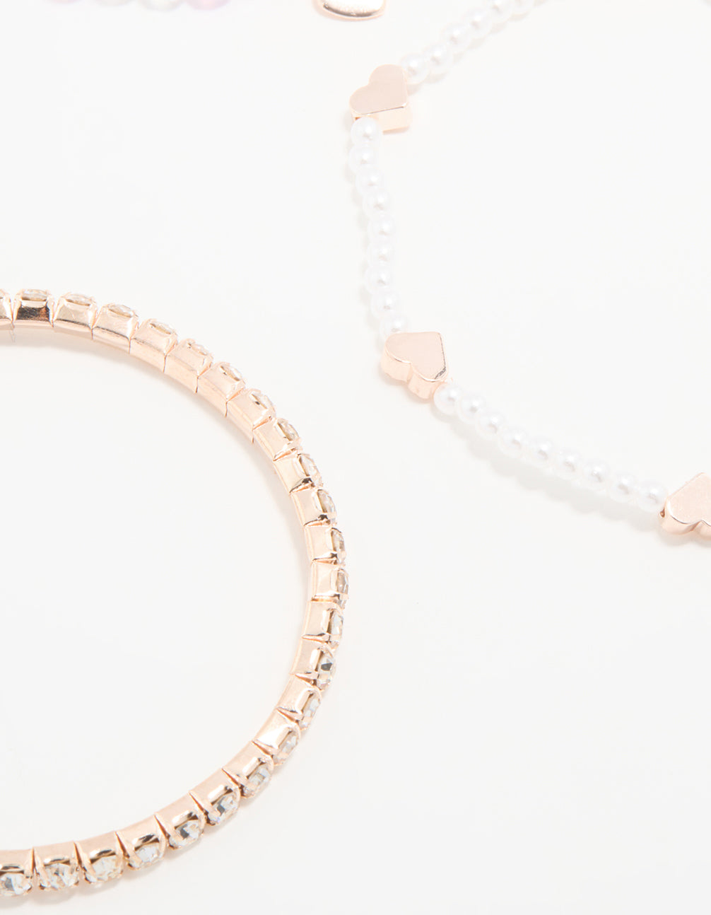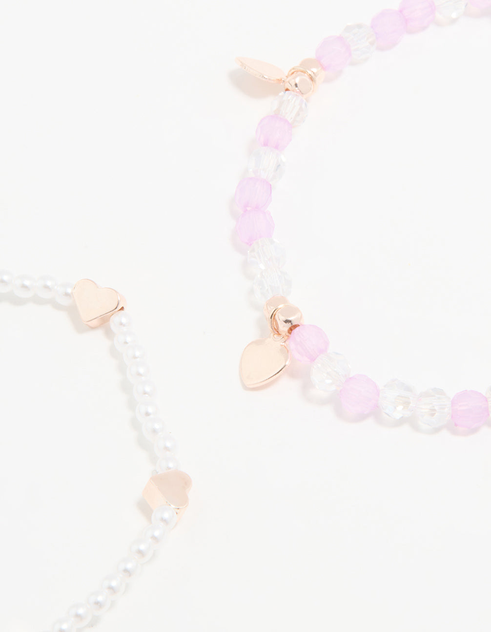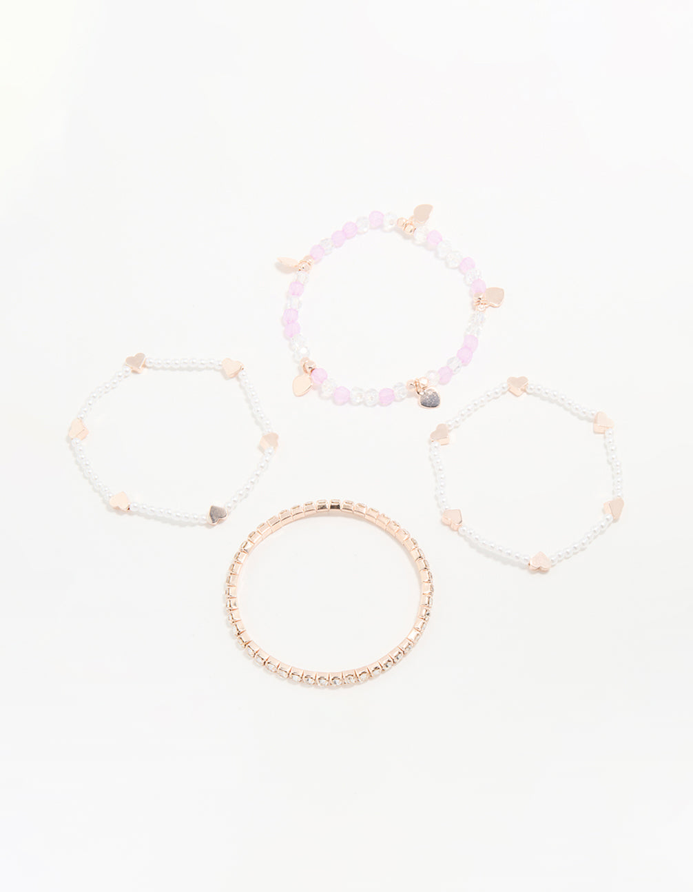 Kids Beaded & Pearl Heart Stretch Bracelets 4-Pack