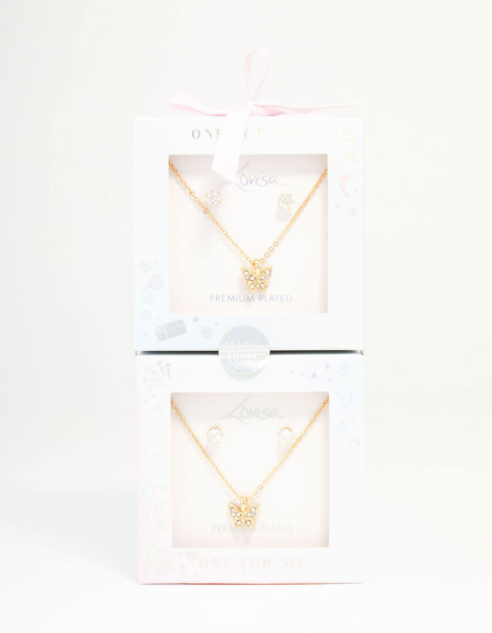 Let your little ones sparkle with this jewellery set. This set includes two pairs of sparkling stud earrings, and two butterfly necklaces embellished with diamantes. It's perfect for sharing with friends or for twice the fun.