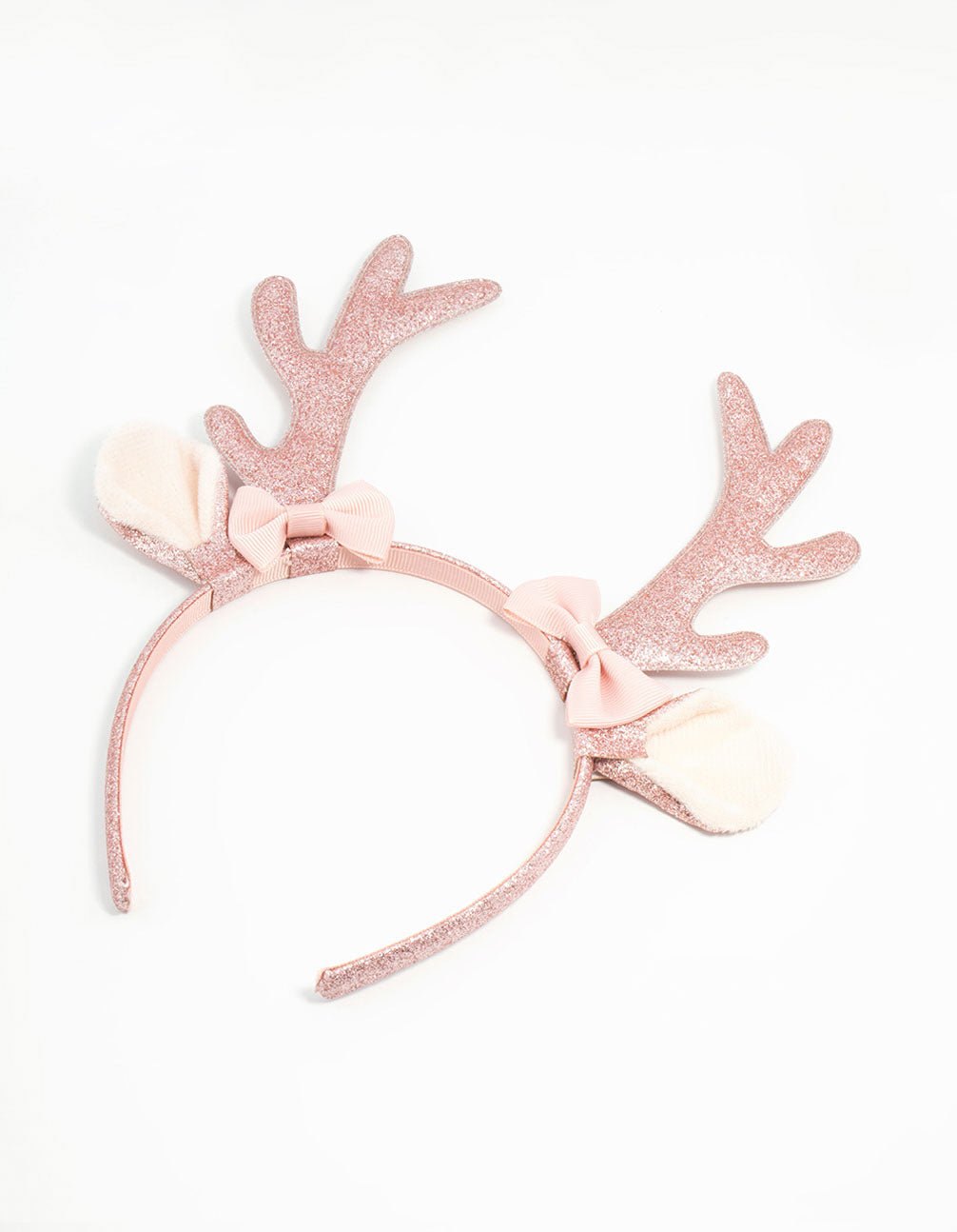 Bring festive cheer to your little one's look with this pink fabric antler headband. This enchanting headband features playful glittery pink reindeer antlers that will make them feel jolly.