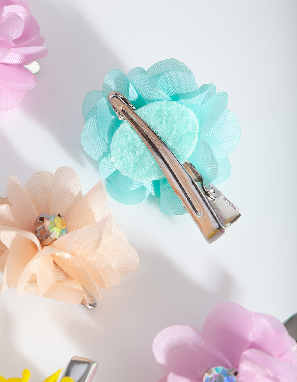 Kids Rainbow Fabric Flower Hair Clip Pack