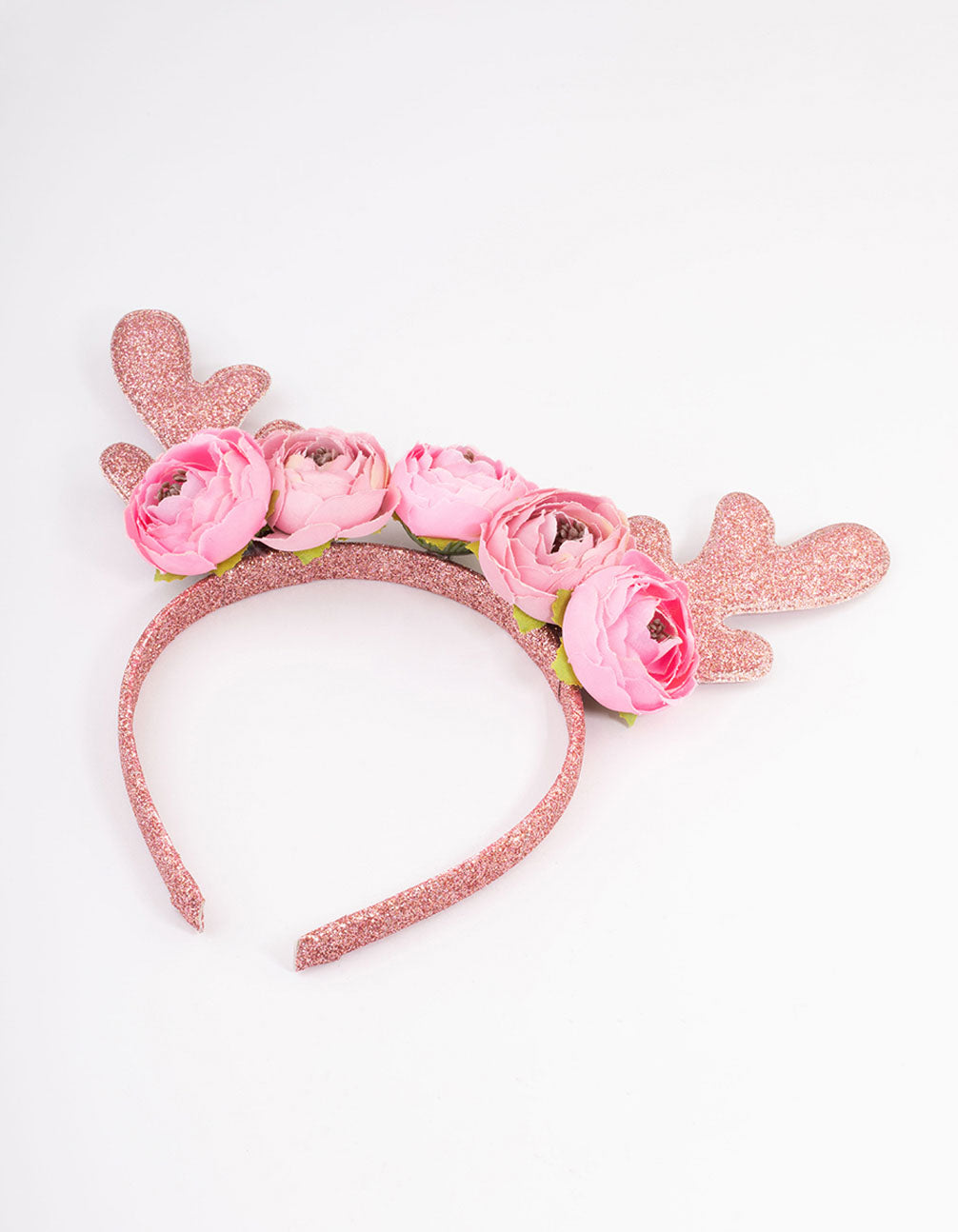 - Celebrate in style with this adorable glitter and floral reindeer antler Christmas headband, perfect for elevating a holiday hairstyle.