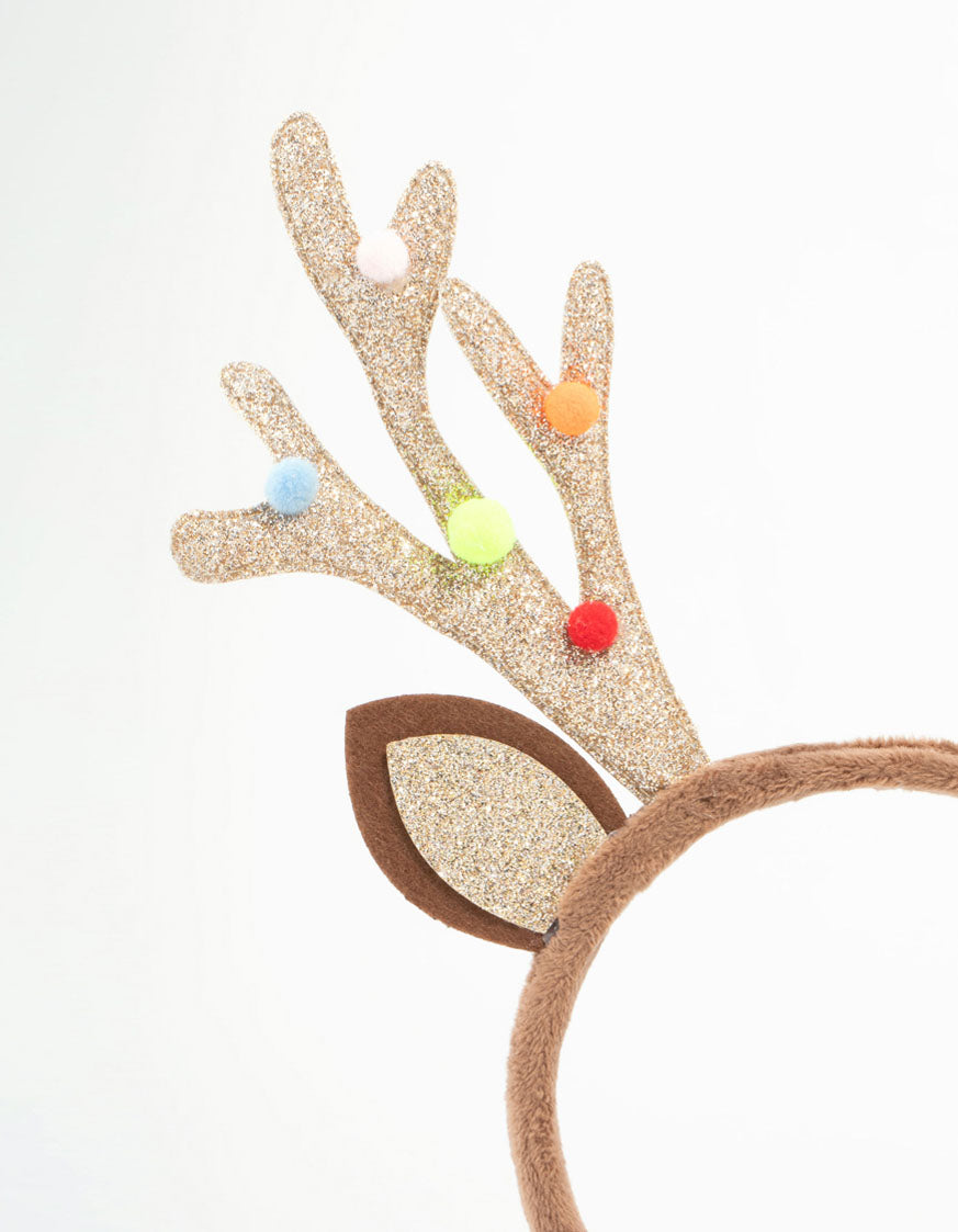 Spread holiday cheer with this kids glittery reindeer antler headband! This headband adds a fun touch to any outfit, making it perfect for getting into the Christmas spirit. The sparkly antlers are sure to make them the star of any holiday gathering.
