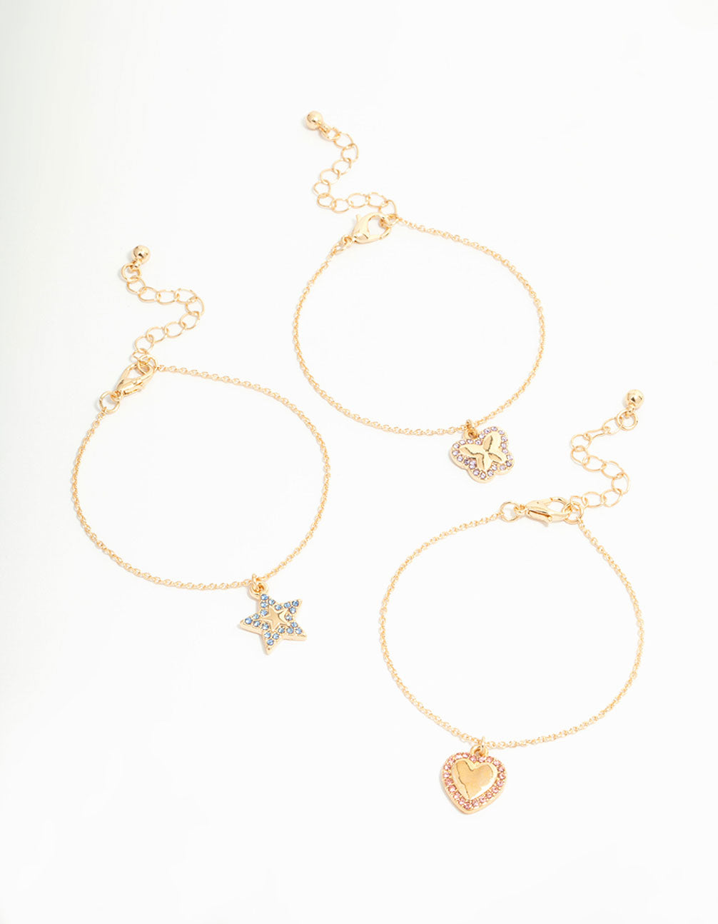 Kids Gold Diamante Heart & Star Butterfly Bracelets 3-Pack