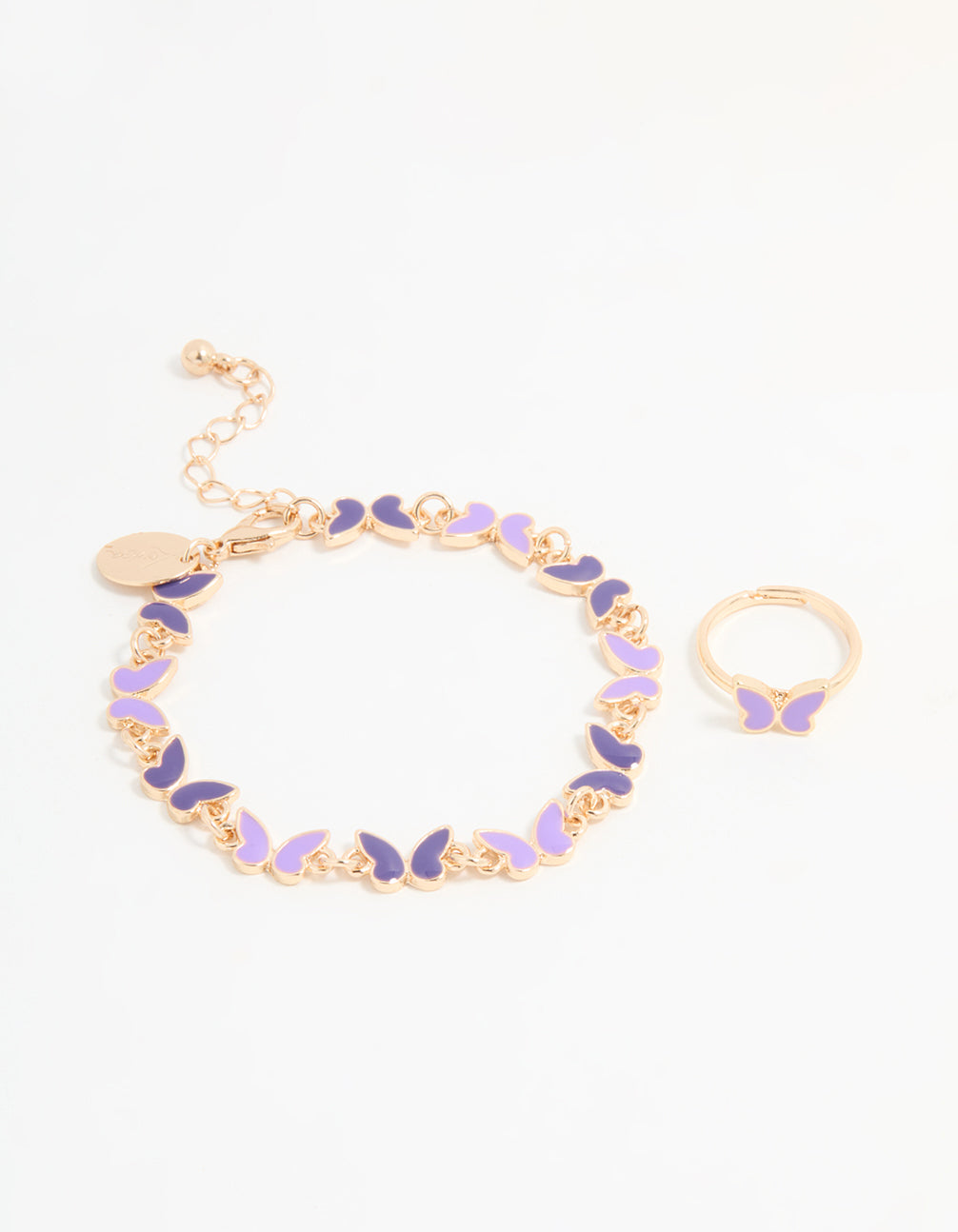 Kids Gold Mini Butterfly Bracelet & Ring Set