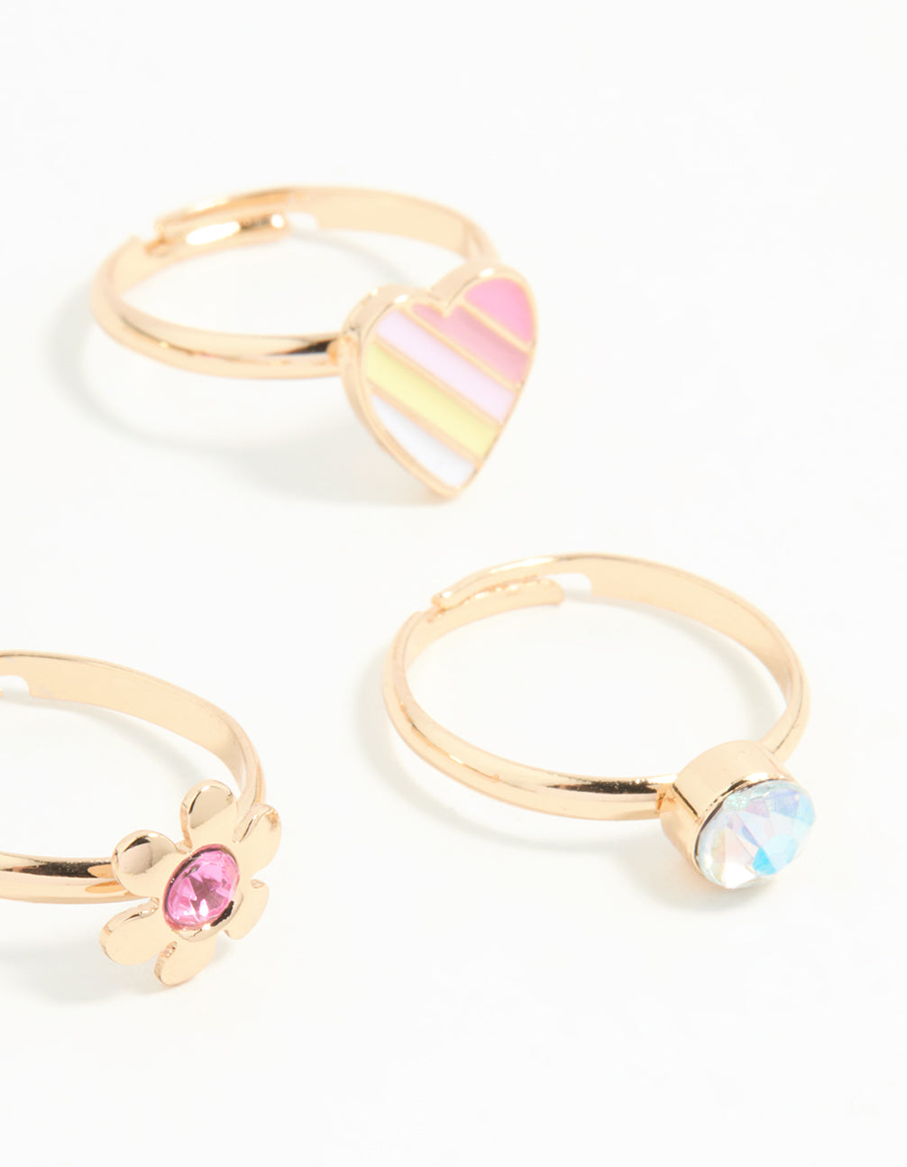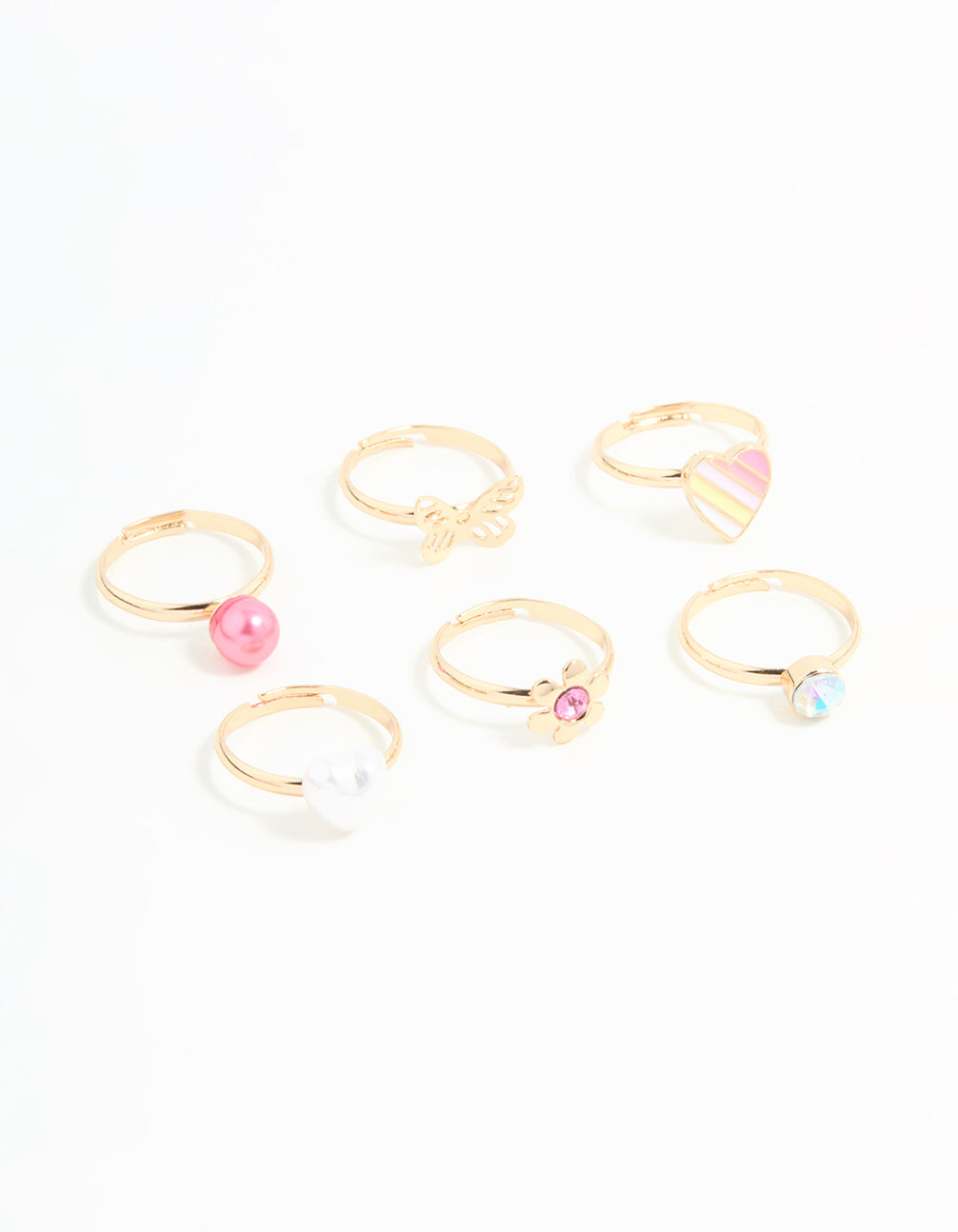 Kids Gold Pearl Heart & Butterfly Stacking Rings 6-Pack