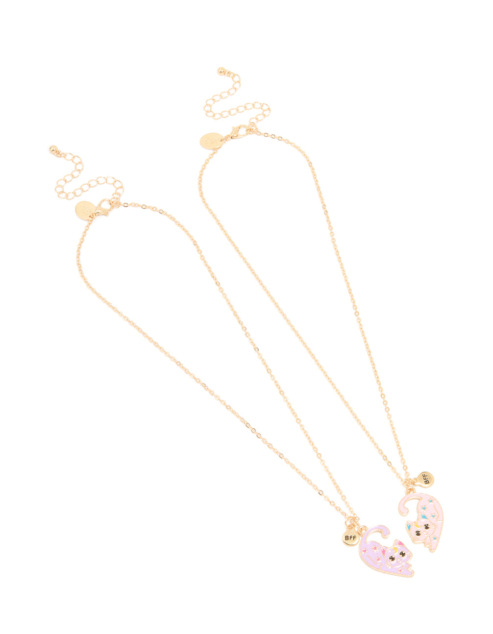 Kids Gold Pink & Purple Cat Best Friends Necklaces 2-Pack