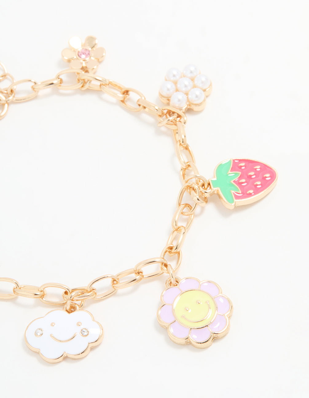 Kids Gold Strawberry & Cloud Charm Bracelet