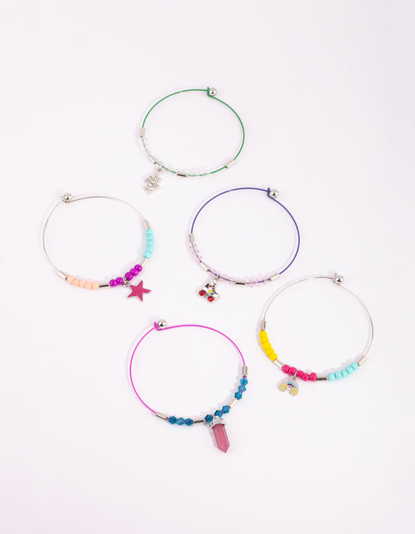 Kids Mixed Metal Beaded Charm Bangle Bracelet
