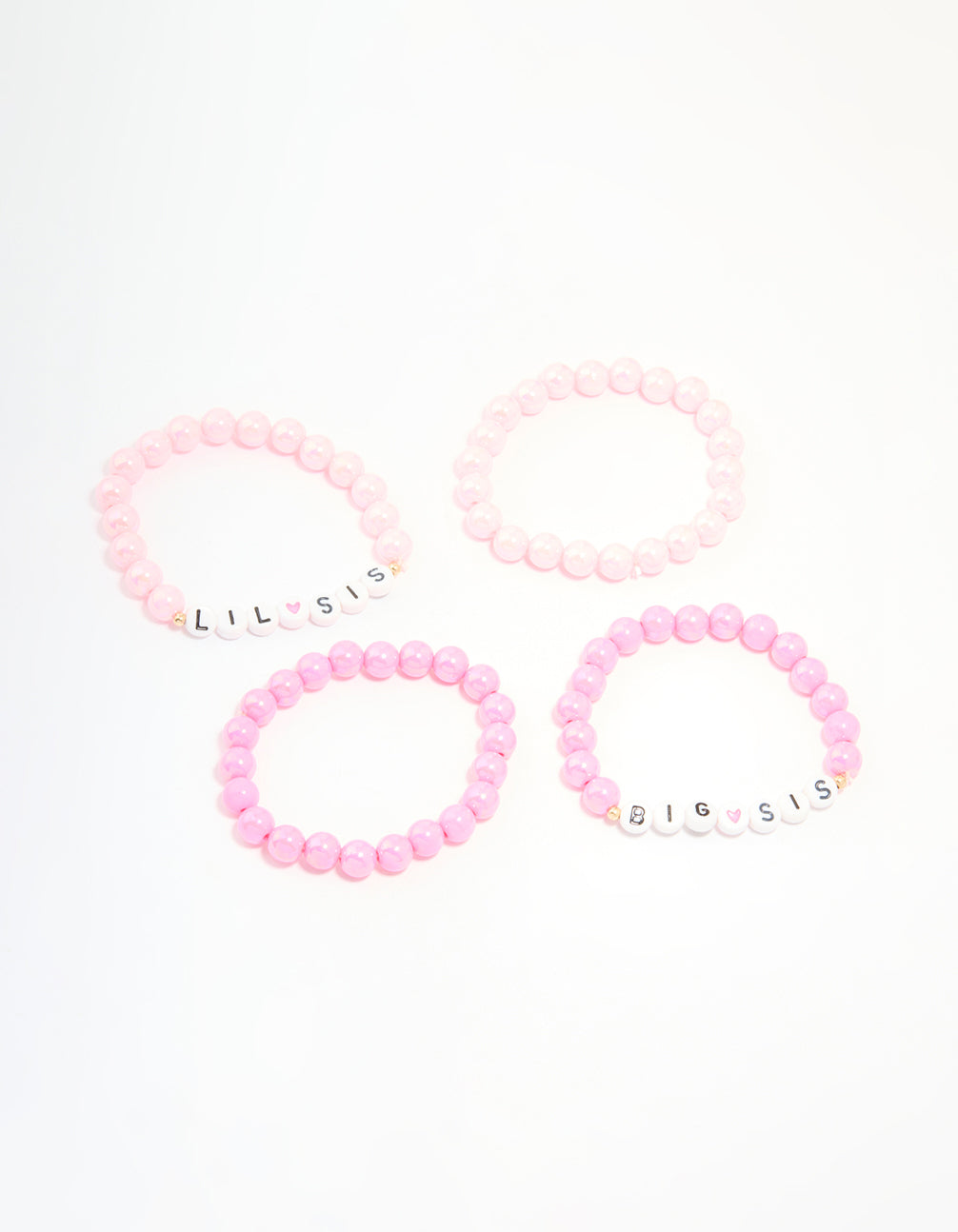 Kids Pink Beaded Little Sis Big Sis Bracelets 4-Pack