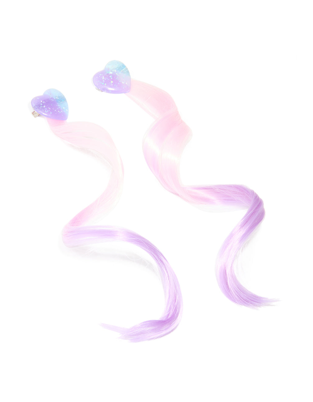 Kids Pink & Purple Faux Hair Heart Clips Pack