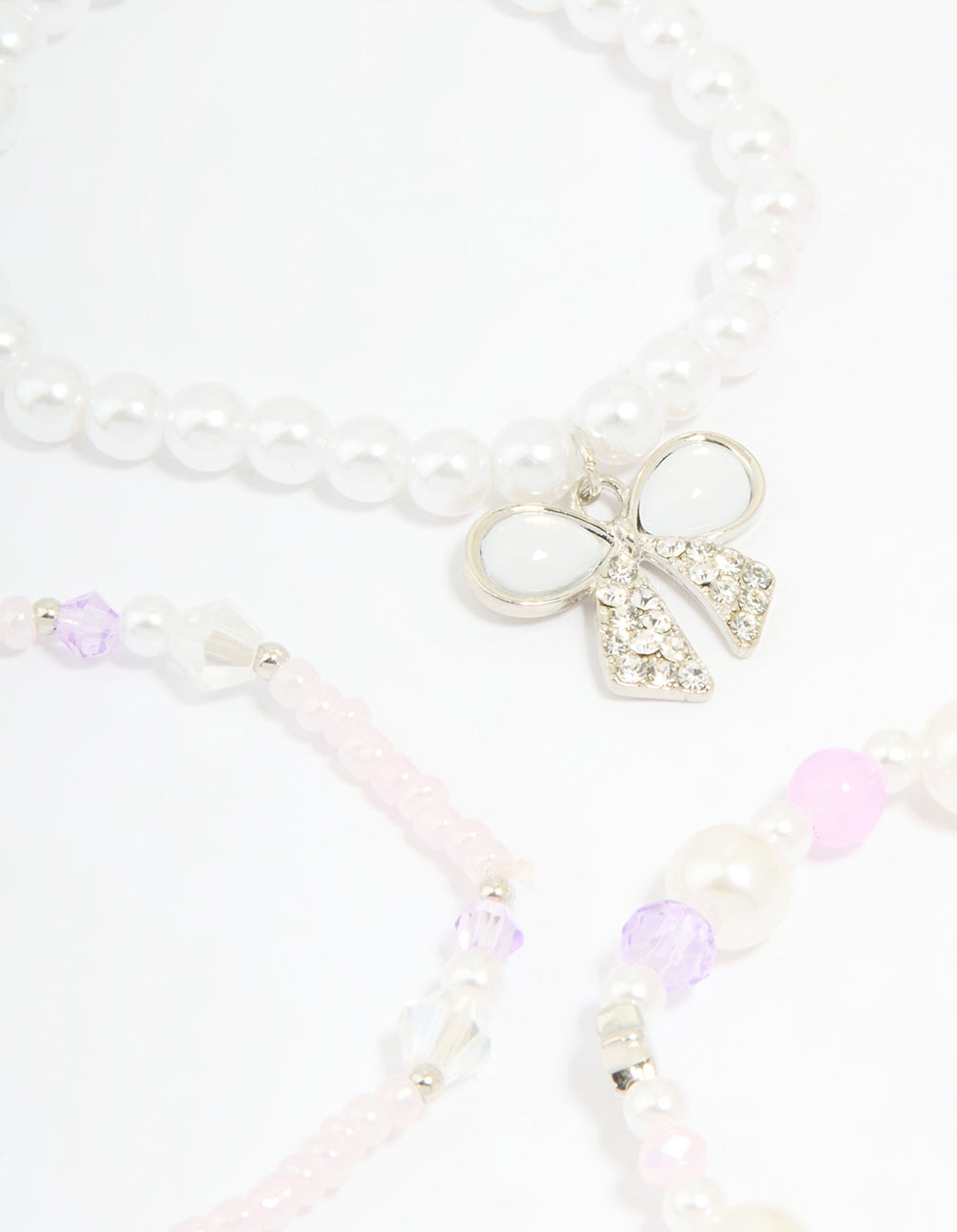 Kids Pink & White Beaded Stretch Bracelets Pack