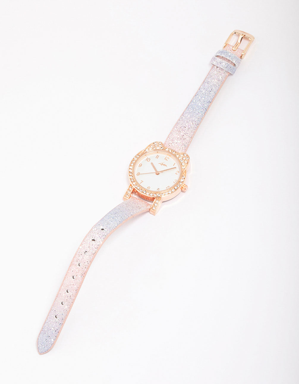 Telling the time is fun and playful for kids with this pretty Rose Gold Diamante Rainbow Watch. This Kids Watch features a sparkly silver band and a rose gold cat-shaped watch face. It's the perfect accessory for little trendsetters!