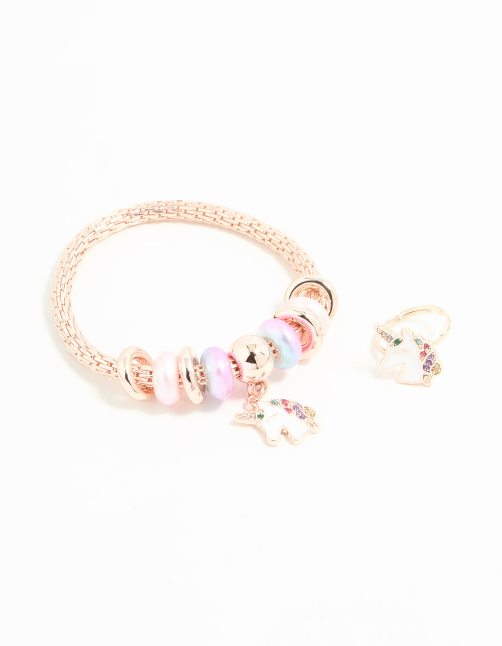 Kids Rose Gold Unicorn Stretch Bracelet & Ring Set