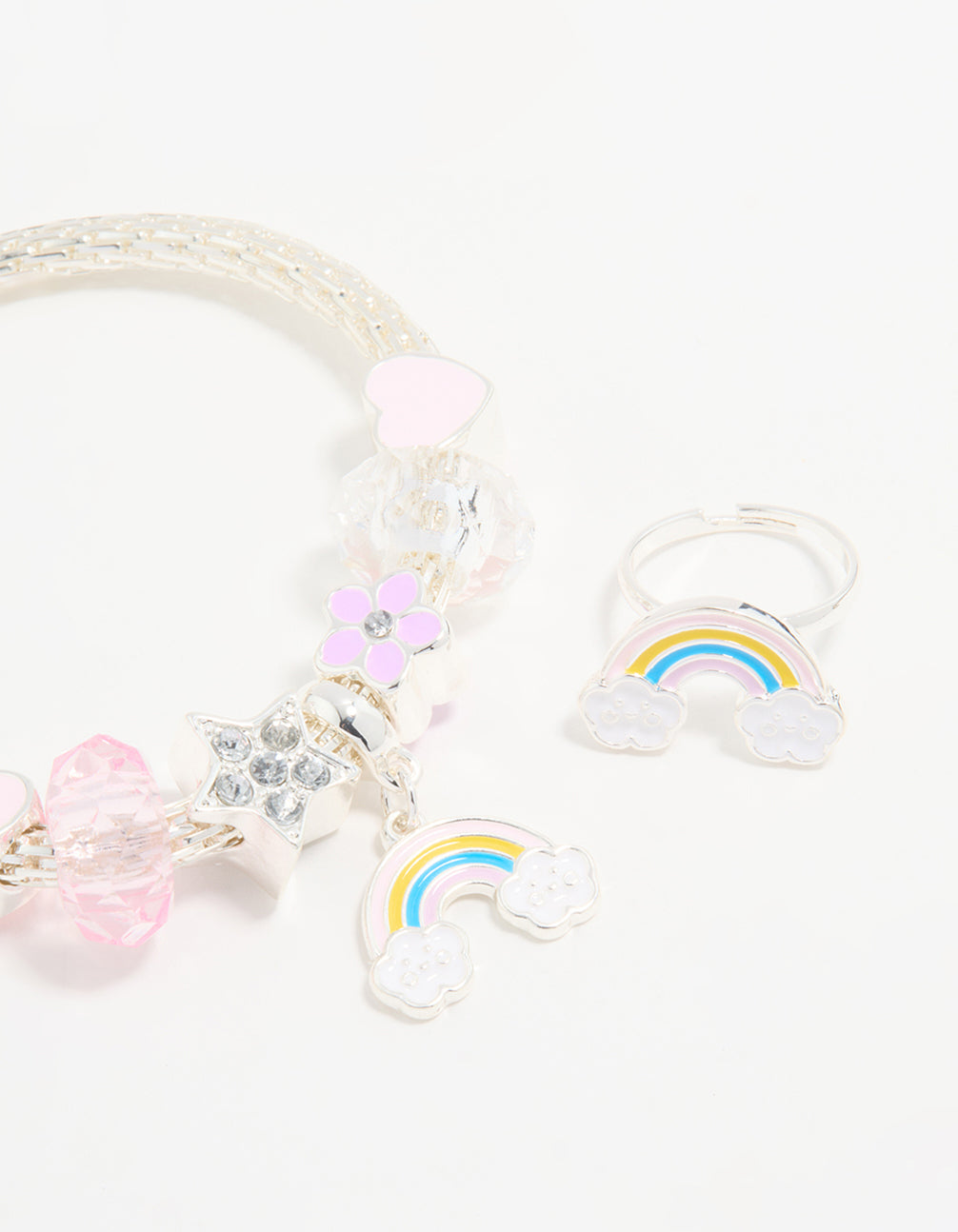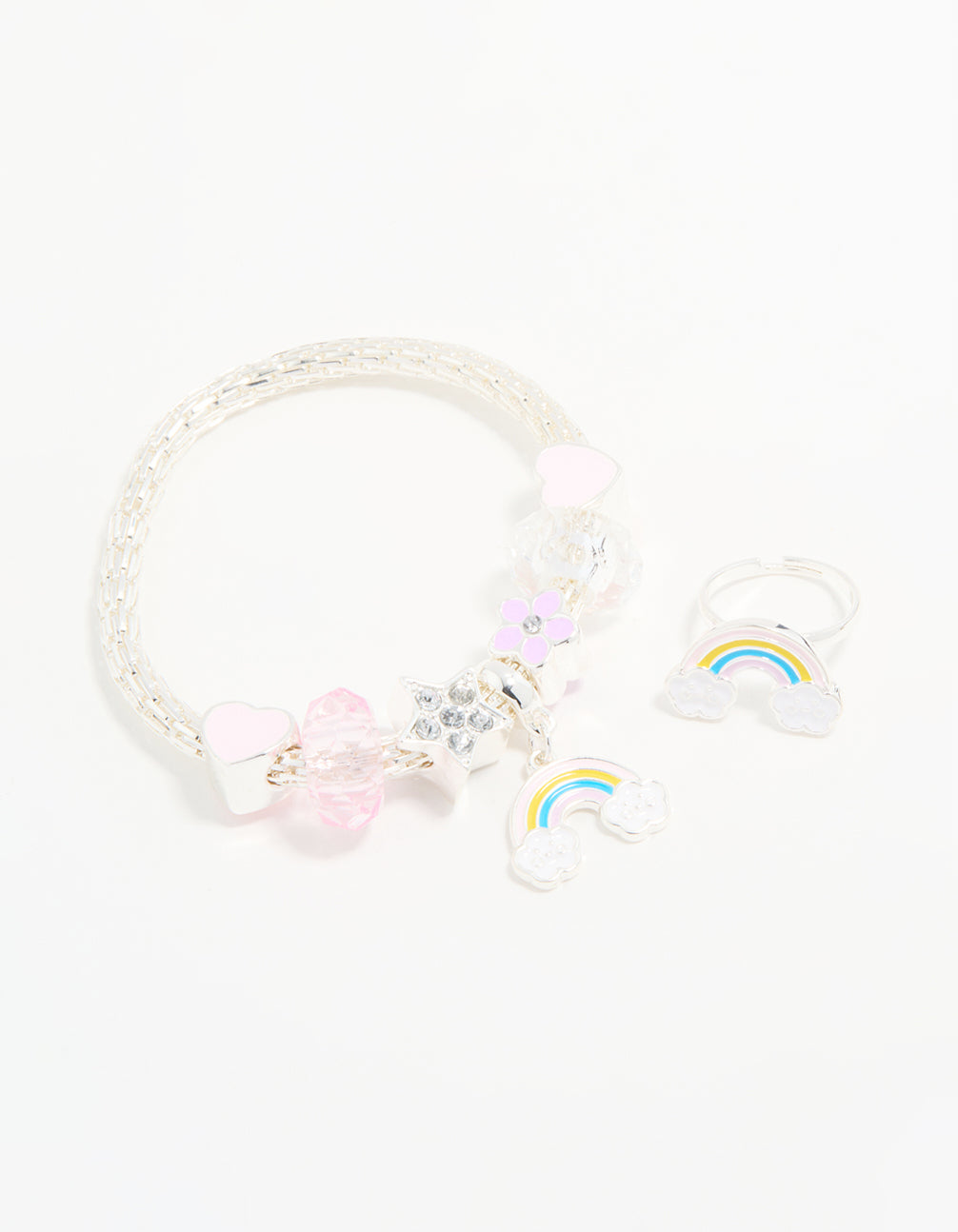 Kids Silver Beaded Rainbow Bracelet & Ring Pack
