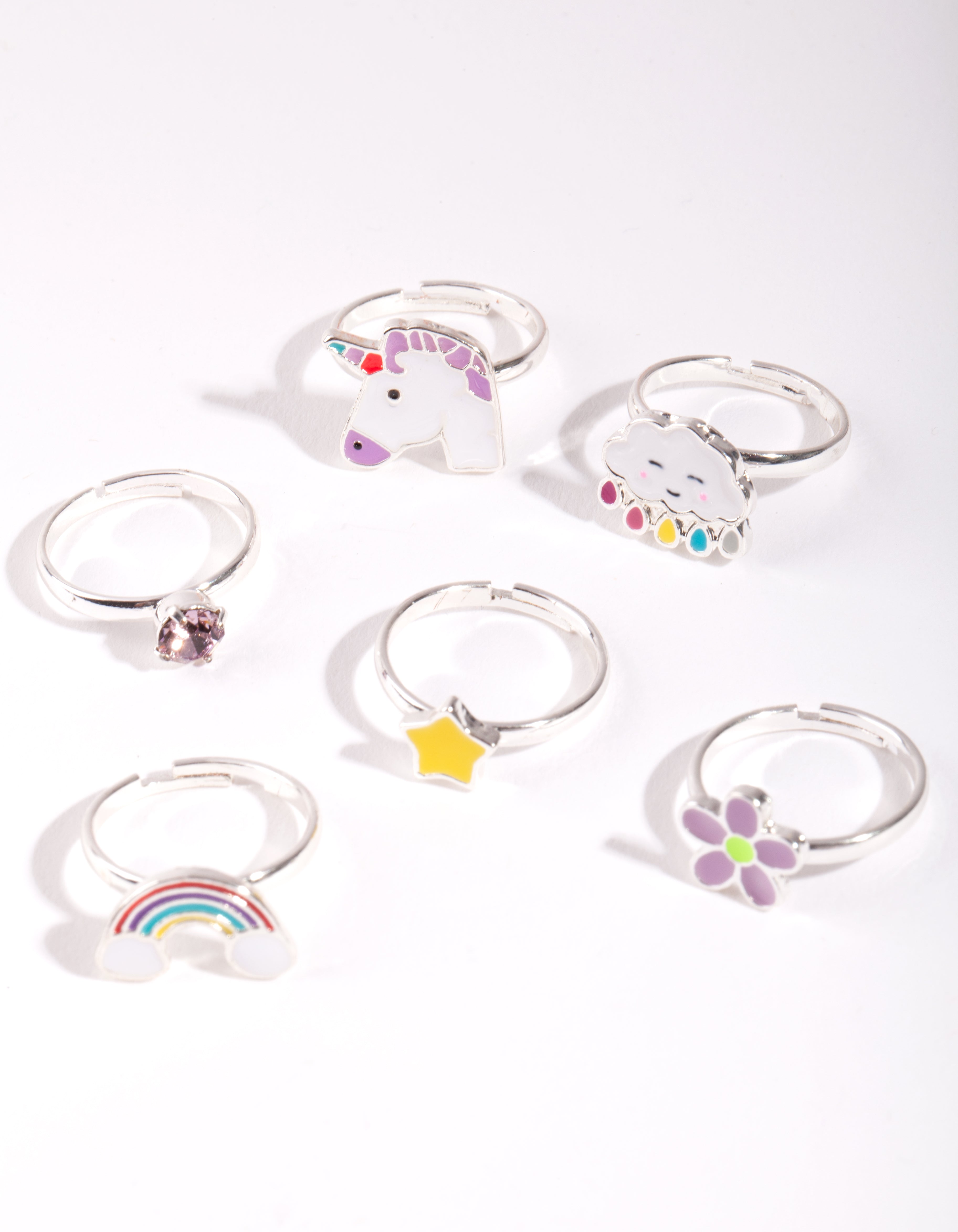 The Lovisa Kids collection is designed for little ones with big imaginations. This ring pack features a cloud and unicorn design.