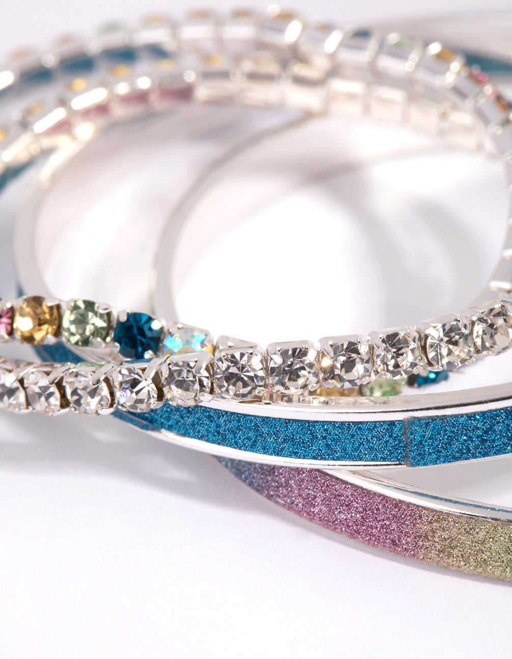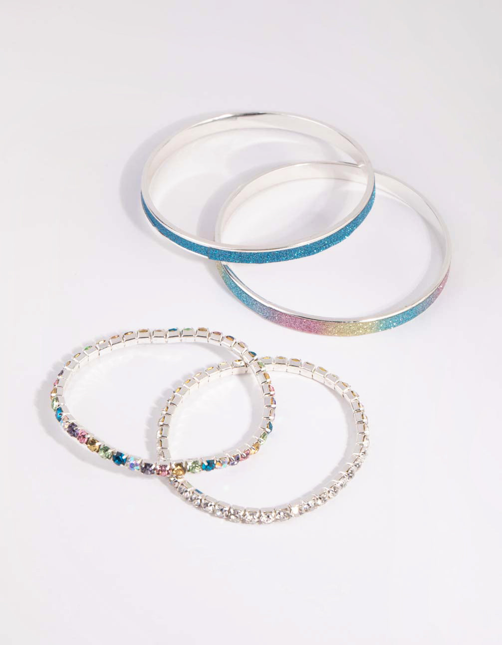 Kids Silver Diamante Glitter Bracelet 4-Pack