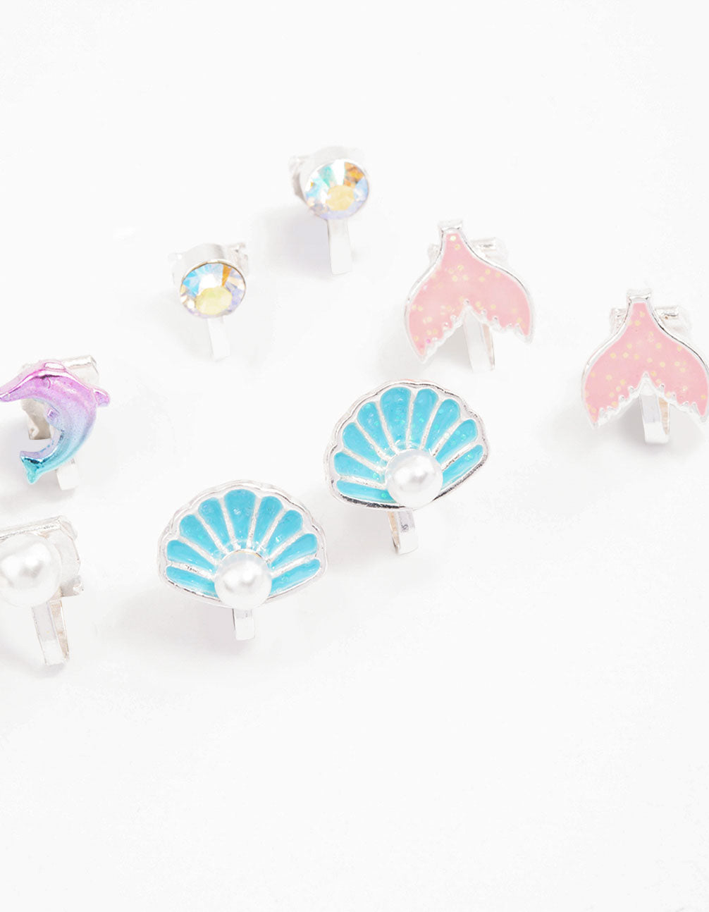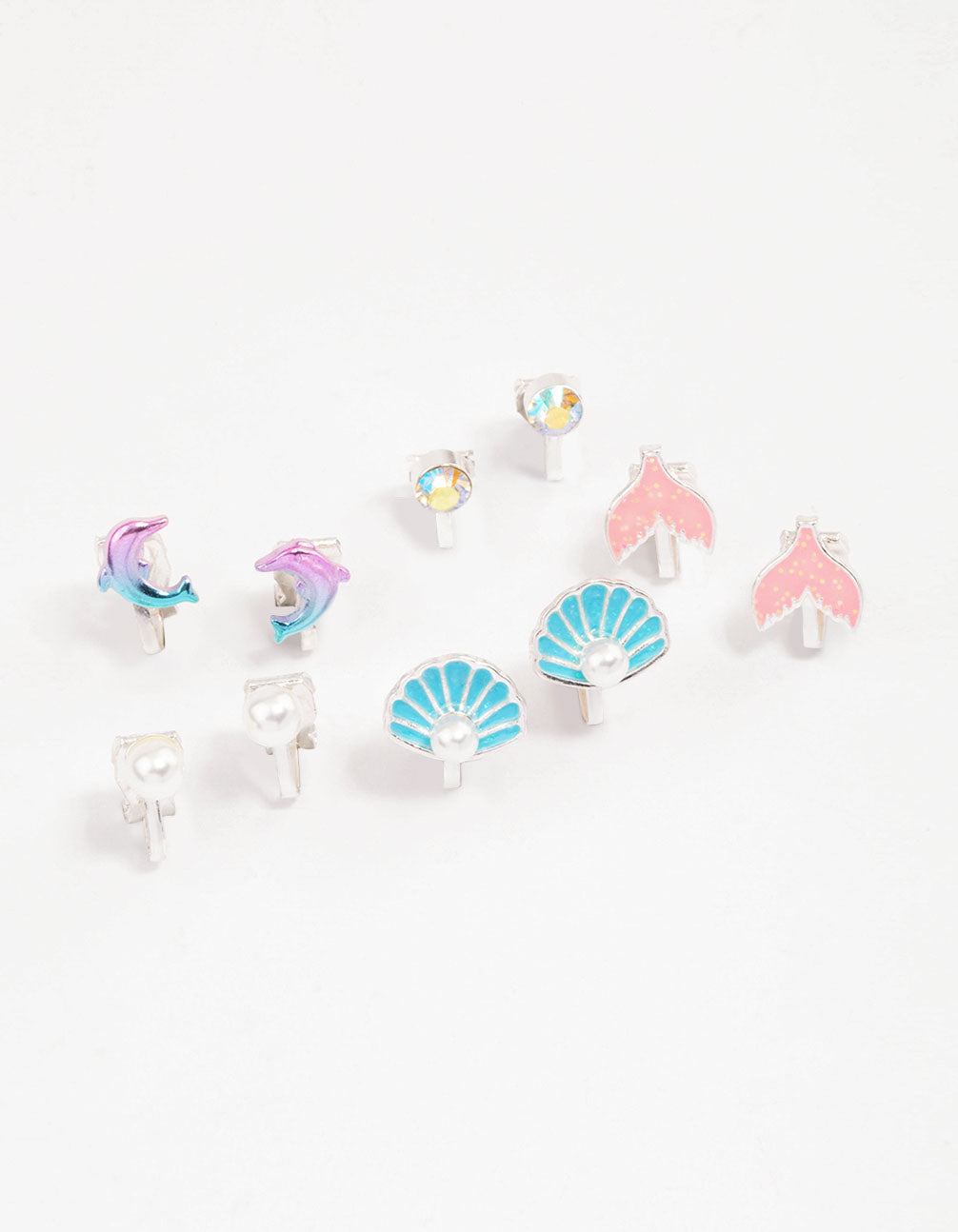 - This earring pack contains six pairs of clip on earrings, featuring ocean-inspired motifs for an under-the-sea-themed stack.